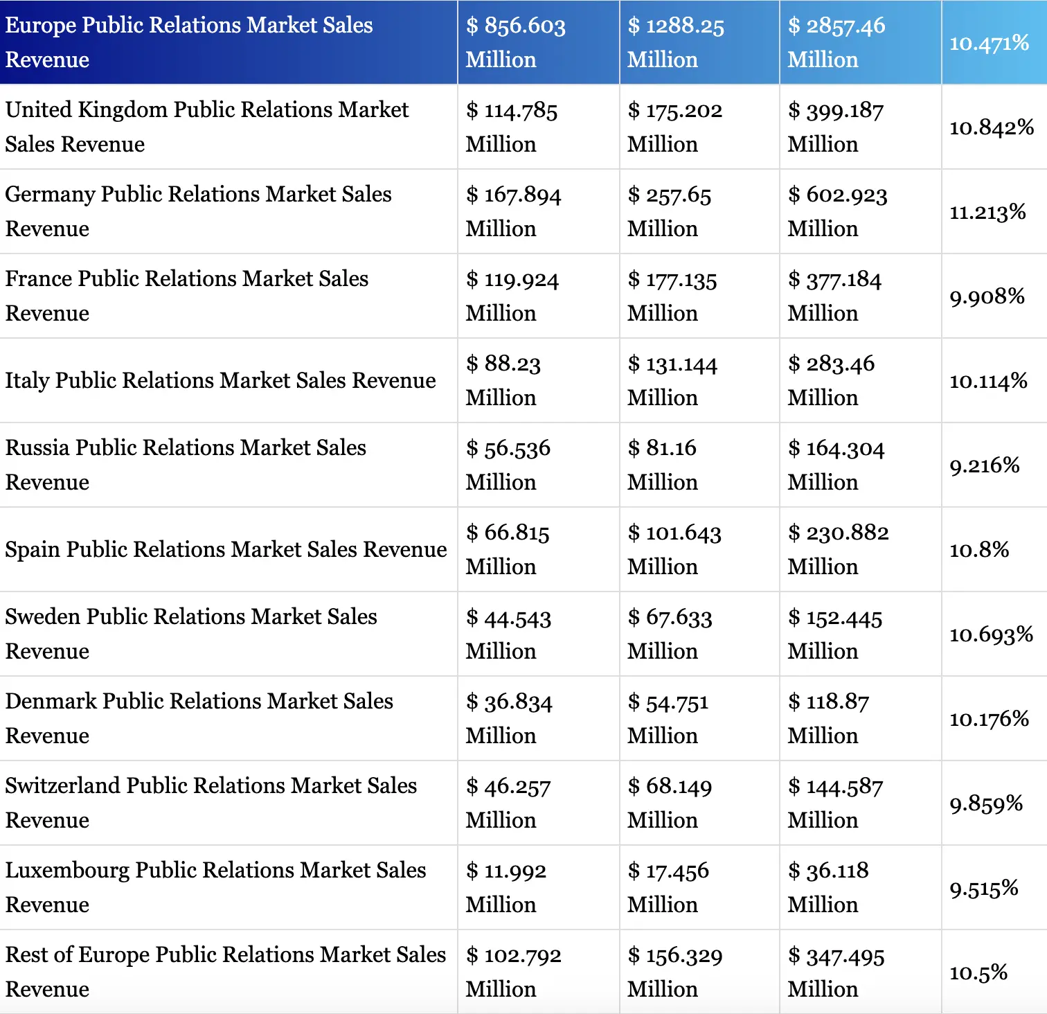 - Германия — один из крупнейших национальных рынков PR в мире (3,99% мирового рынка PR в 2025 году, Cognitive Market Research);