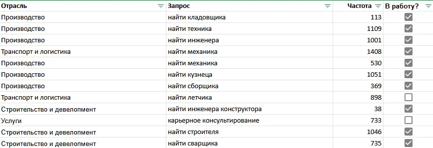 Процесс создания посадочных страниц:Мы начали с анализа целевой аудитории и формирования списка ключевых запросов, по которым мы хотели бы получить трафик. Это включало как общие запросы («Найти разработчика»), так и более узкие («Найти менеджера по персоналу», «Найти дизайнера» и т.д.).