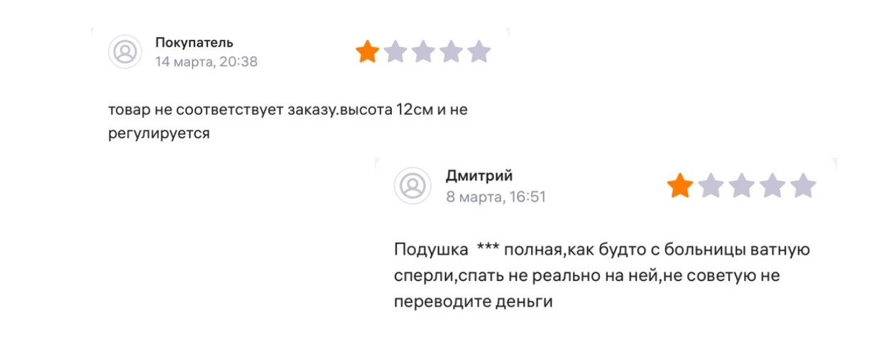 И она не устраивает покупателя в сравнении с тем, что он видит в отзывах или карточке товара