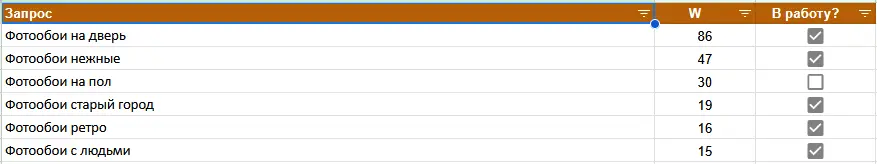- Разделили запросы по интенту: где нужна категория, где товар, а где информационная страница.Сгруппировали семантику и соотнесли с существующими страницами.