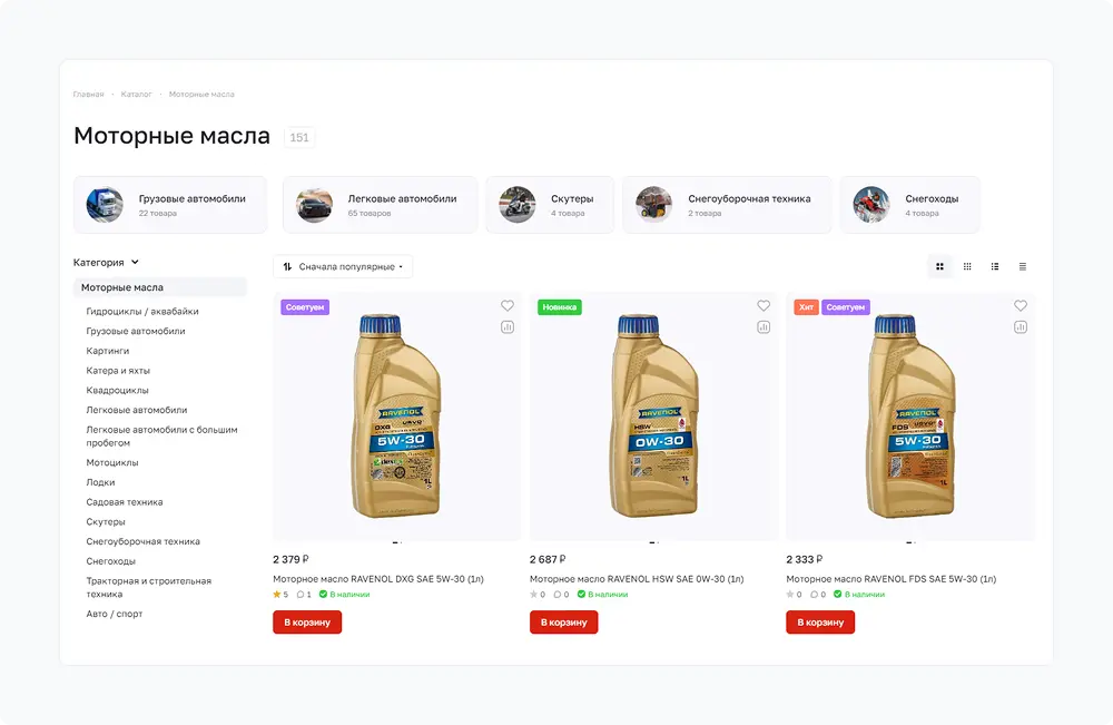 Структура разделов стала более детализированной. Пользователи получили возможность переключения между компактным и крупным отображением товаров, что улучшает восприятие информации.