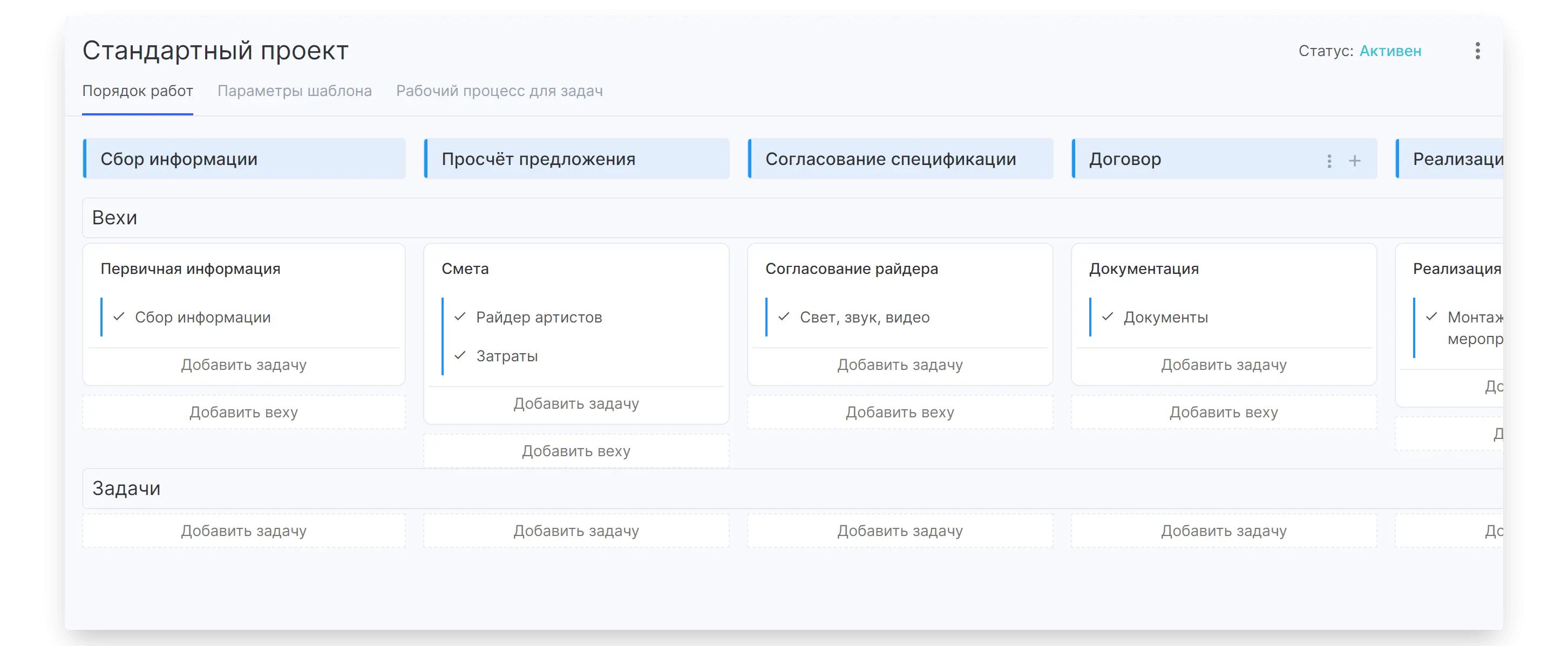 Вместо множества разрозненных задач внедрили укрупненные этапы с подробными чек-листами. Это упростило планирование и снизило административную нагрузку на руководителей.