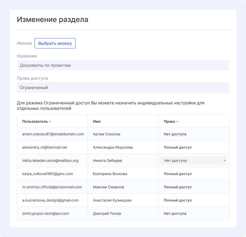 Система позволяет настраивать разные уровни доступа для конфиденциальной информации.