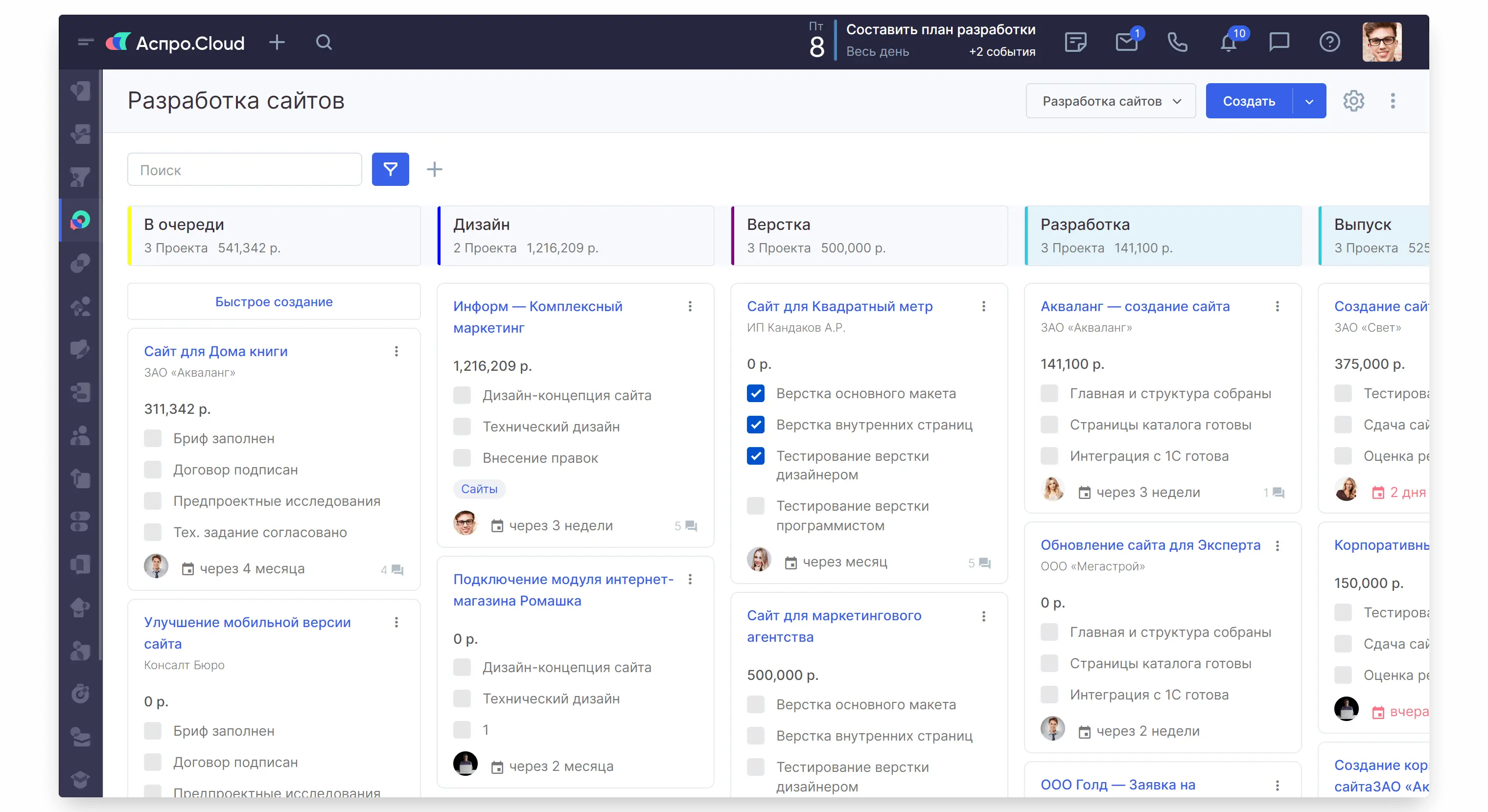 - Очередь (входящие заказы) — от 4 до 8 проектов.