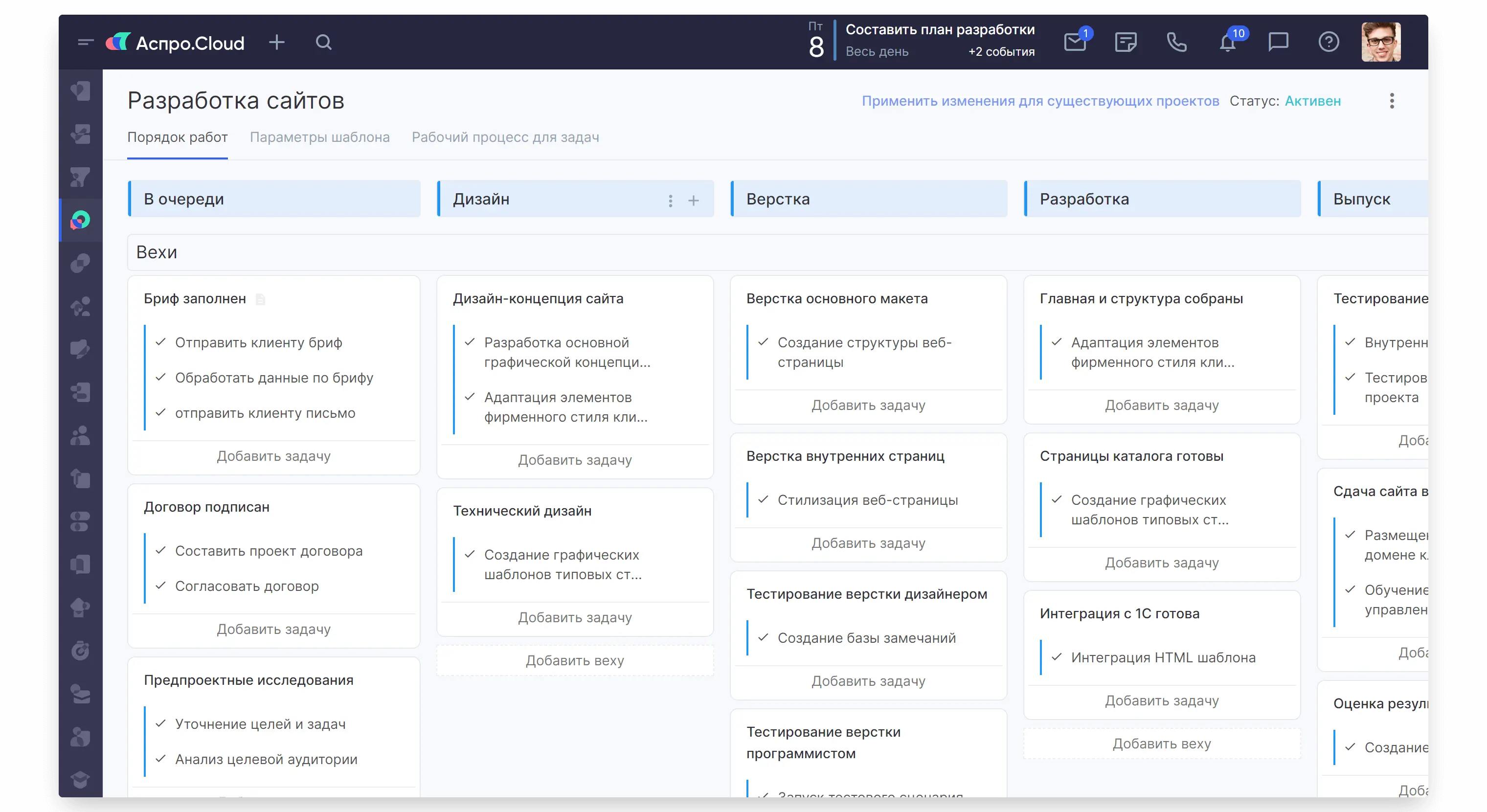 На основе этой схемы создали цифровую доску проектов с колонками для каждого этапа и чек-листами задач.