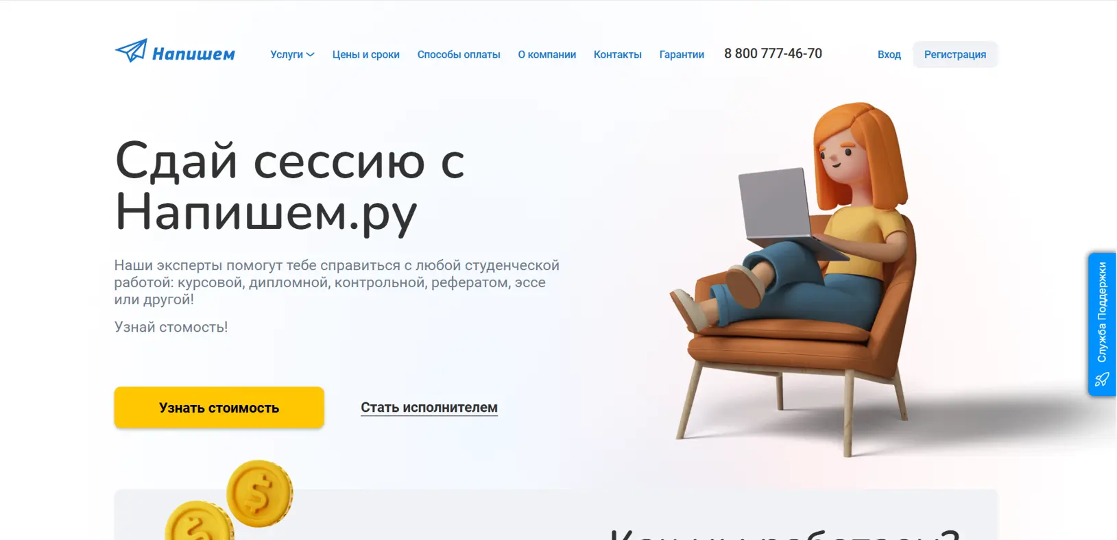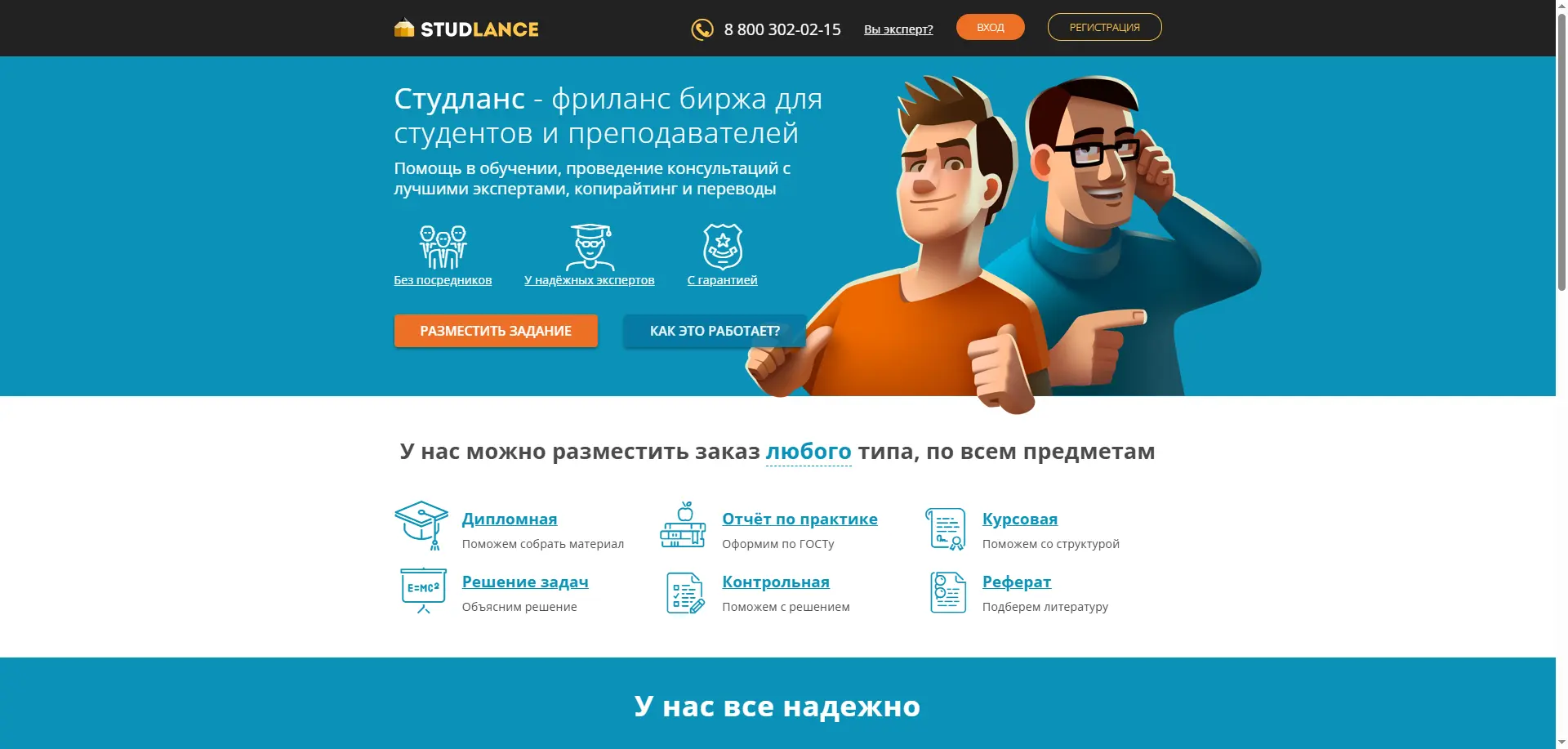 Плюсы: один из старейших сервисов на рынке (более 20 лет). Предоставляет бессрочную гарантию и поддержку по работам. Развитая бонусная программа и мобильное приложение.