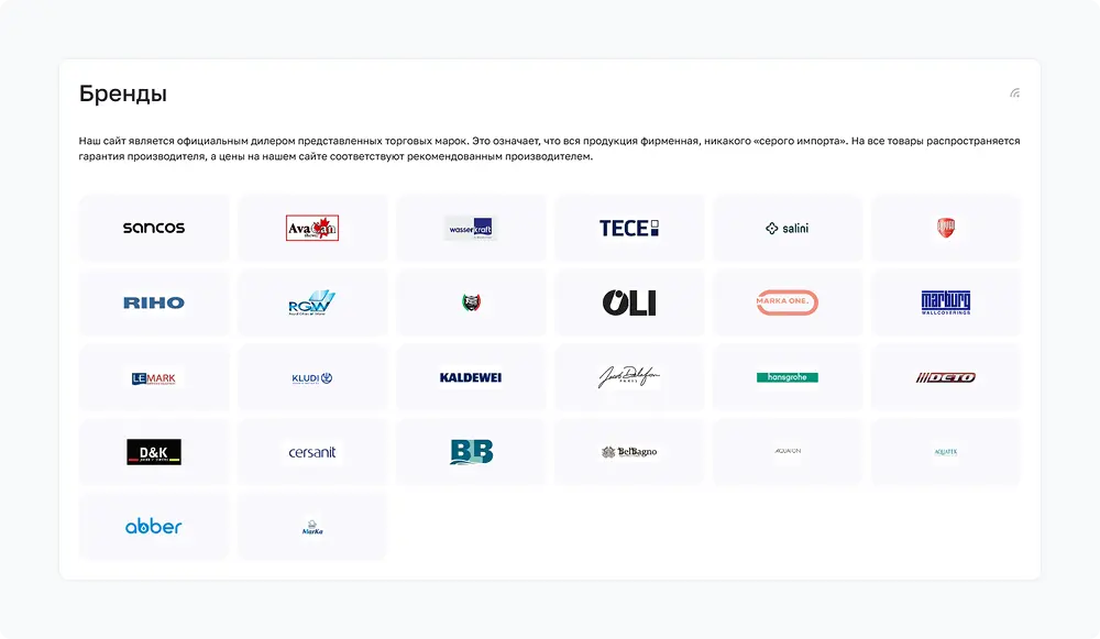 Производителей вынесли в отдельный раздел с описанием компаний и полным каталогом их продукции.