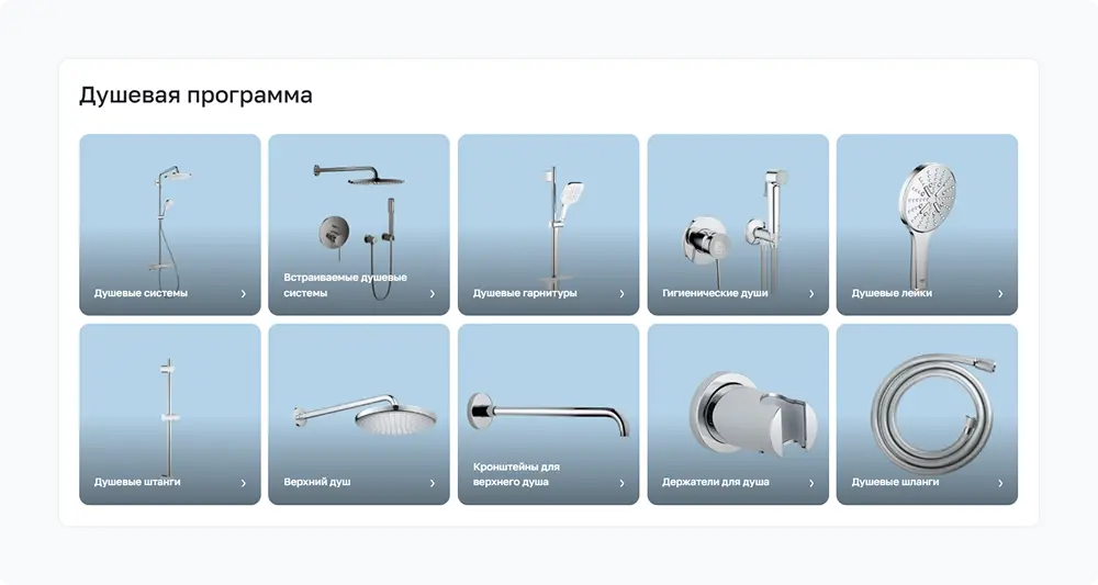Структуру каталога полностью переработали. Категории разбили на подразделы с большими изображениями, чтобы покупатели могли визуально различать типы продукции.