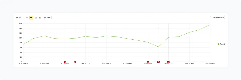 - Количество ежедневных визитов из поисковых систем выросло с 250 до 380