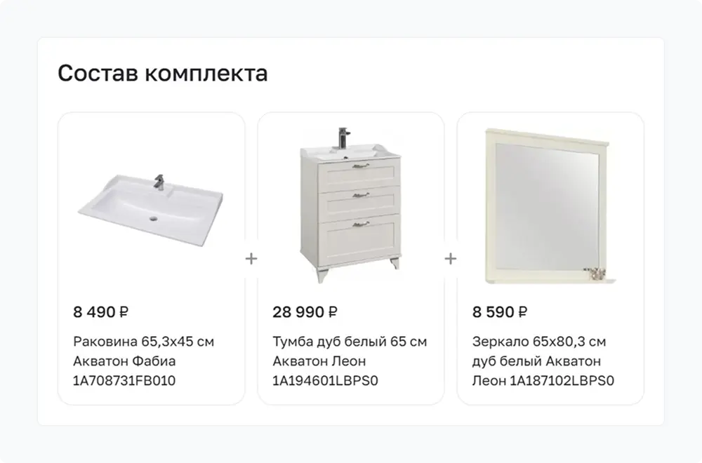 Для мебельных комплектов внедрили специальную функцию продажи наборами с возможностью покупки отдельных элементов.