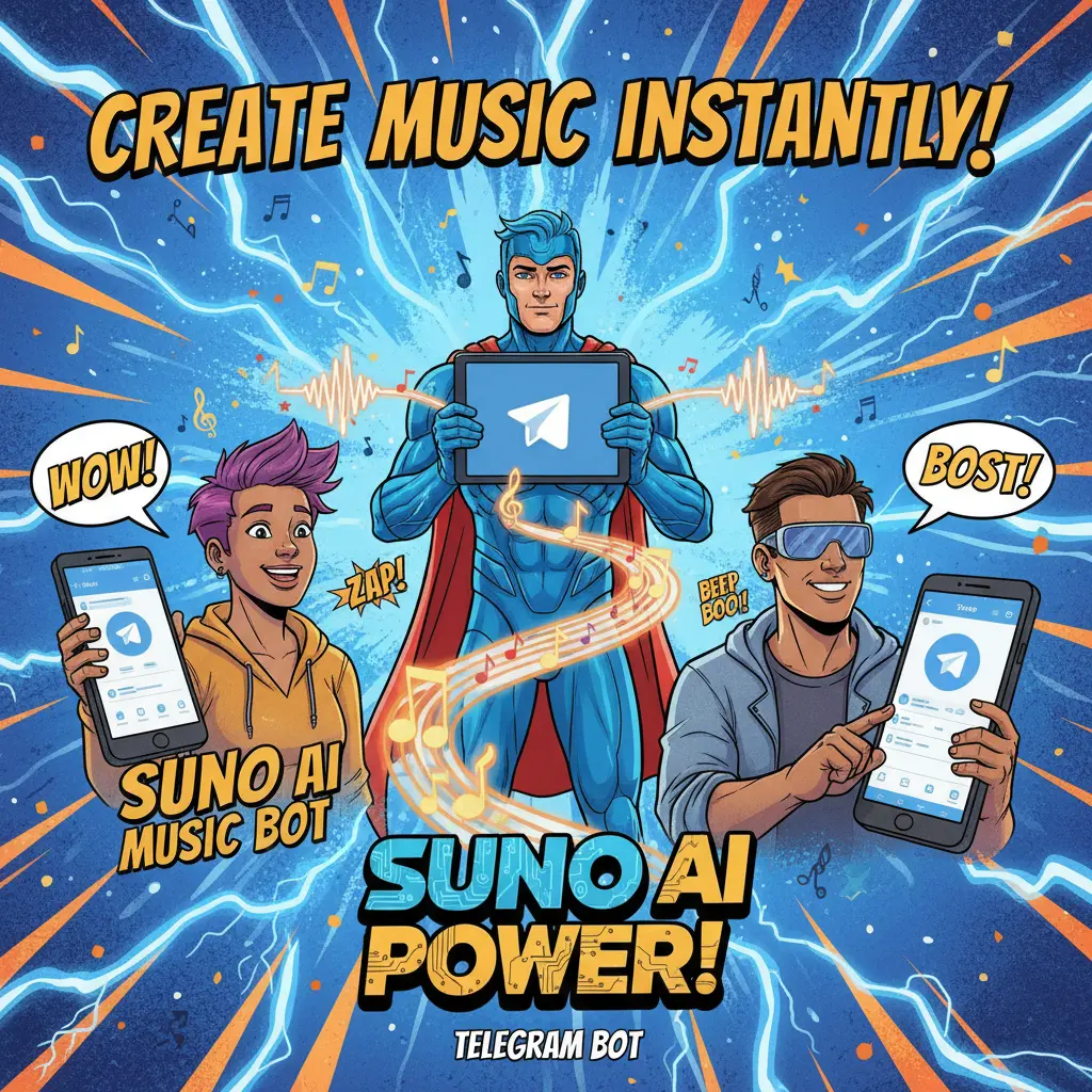 Уникальный Telegram-бот на базе SunoБот в Telegram стал идеальным проводником в мир Suno. Он предлагает интуитивный интерфейс прямо в любимом мессенджере, избавляя от необходимости регистрации на сторонних платформах и сложных настроек. Это ваш личный композитор и звукорежиссёр в кармане.