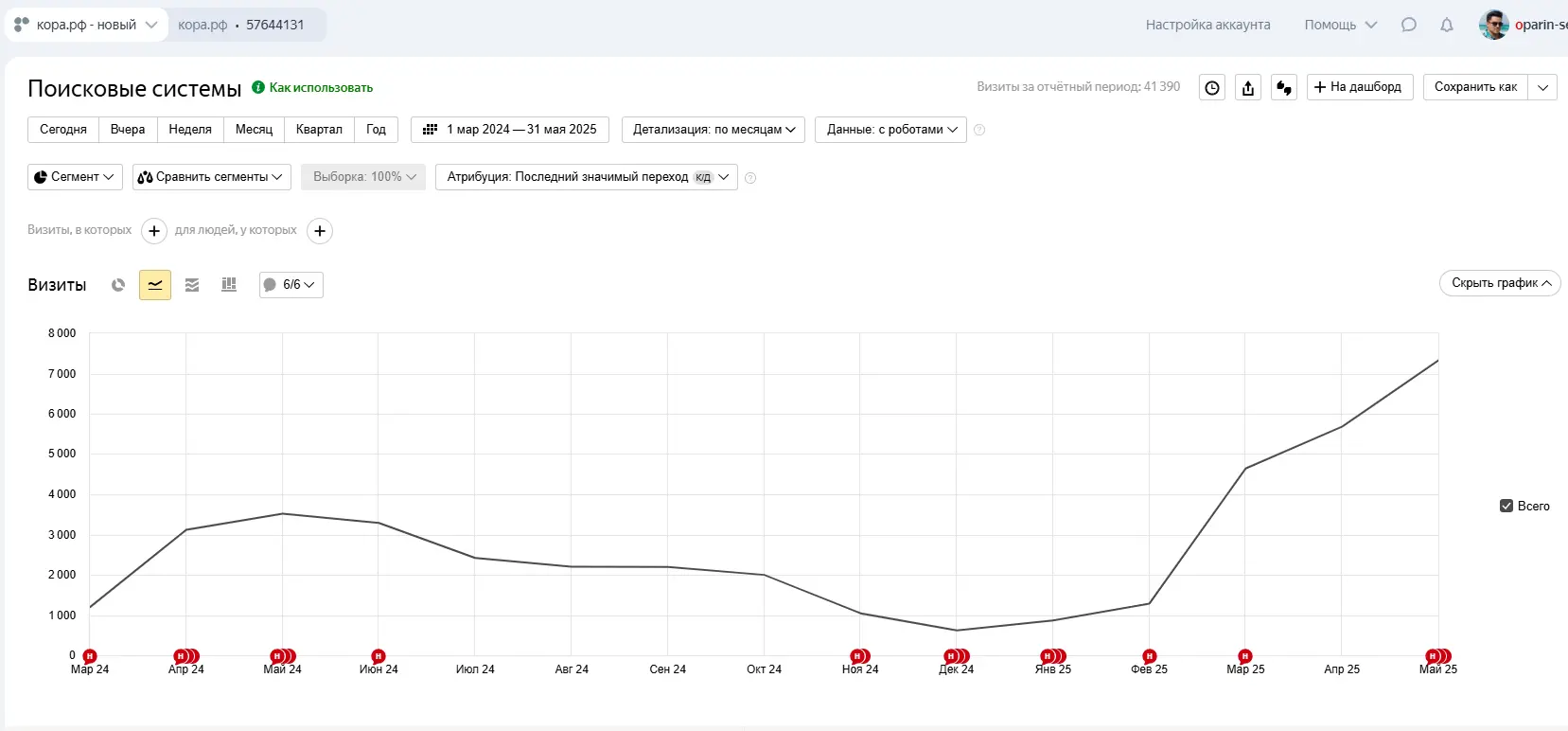 Такой подход позволил нам не просто “пережить” несезон, а использовать его как ресурс для накопления видимости и потенциального роста — чтобы к новому весеннему пику сайт подошёл в отличной форме.