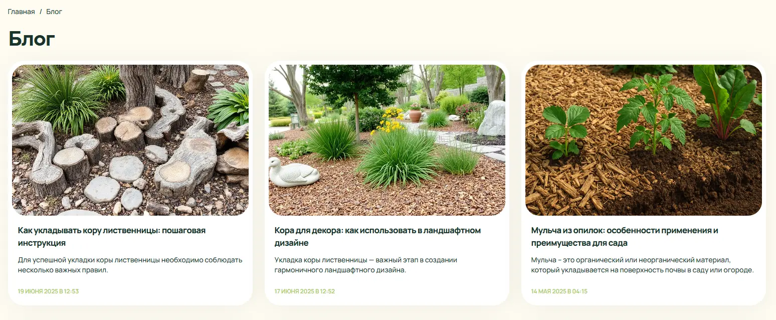 Понимая, что осенью и зимой спрос на основную продукцию (кора, мульча) сильно падает, мы решили использовать это время с умом — сфокусировались на контент-маркетинге. Цель — не просто удержать трафик, а расширить охват и подогреть интерес к будущим покупкам.