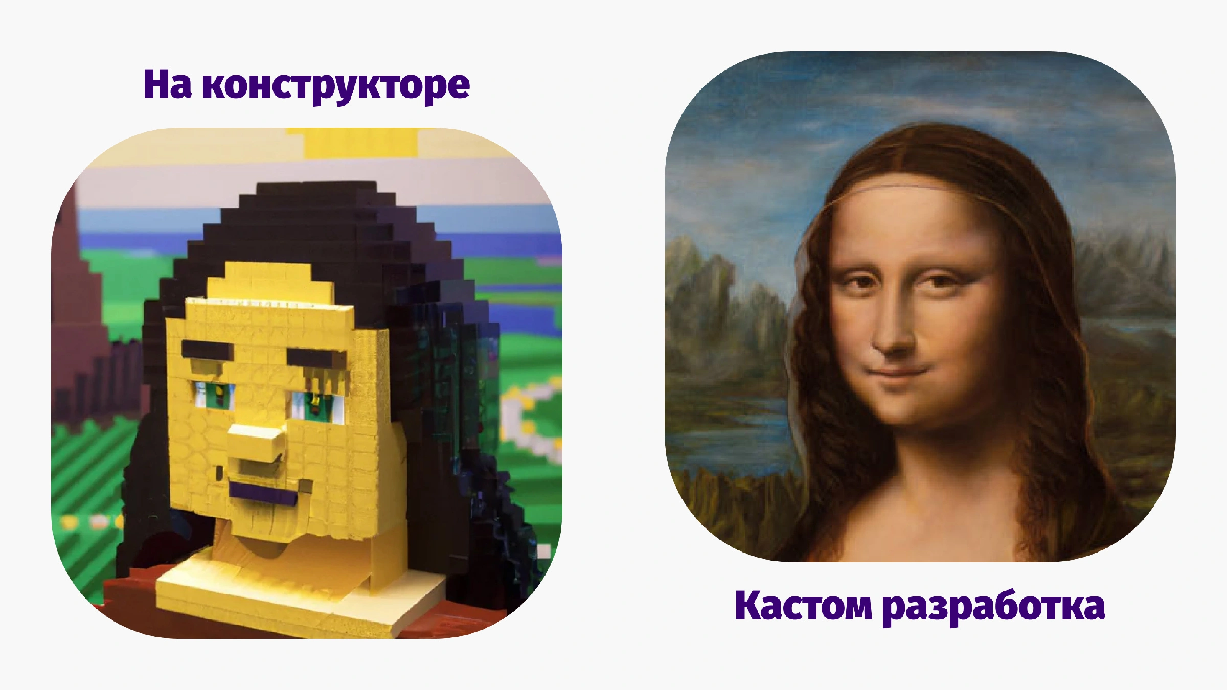 Еще есть low code-разработка, где к готовым блокам можно приписать свой код. Подходит, когда нужно сделать что-то нестандартное, например, кастомизировать меню, поменять расположение пунктов, добавить новые разделы и уникальные иконки.