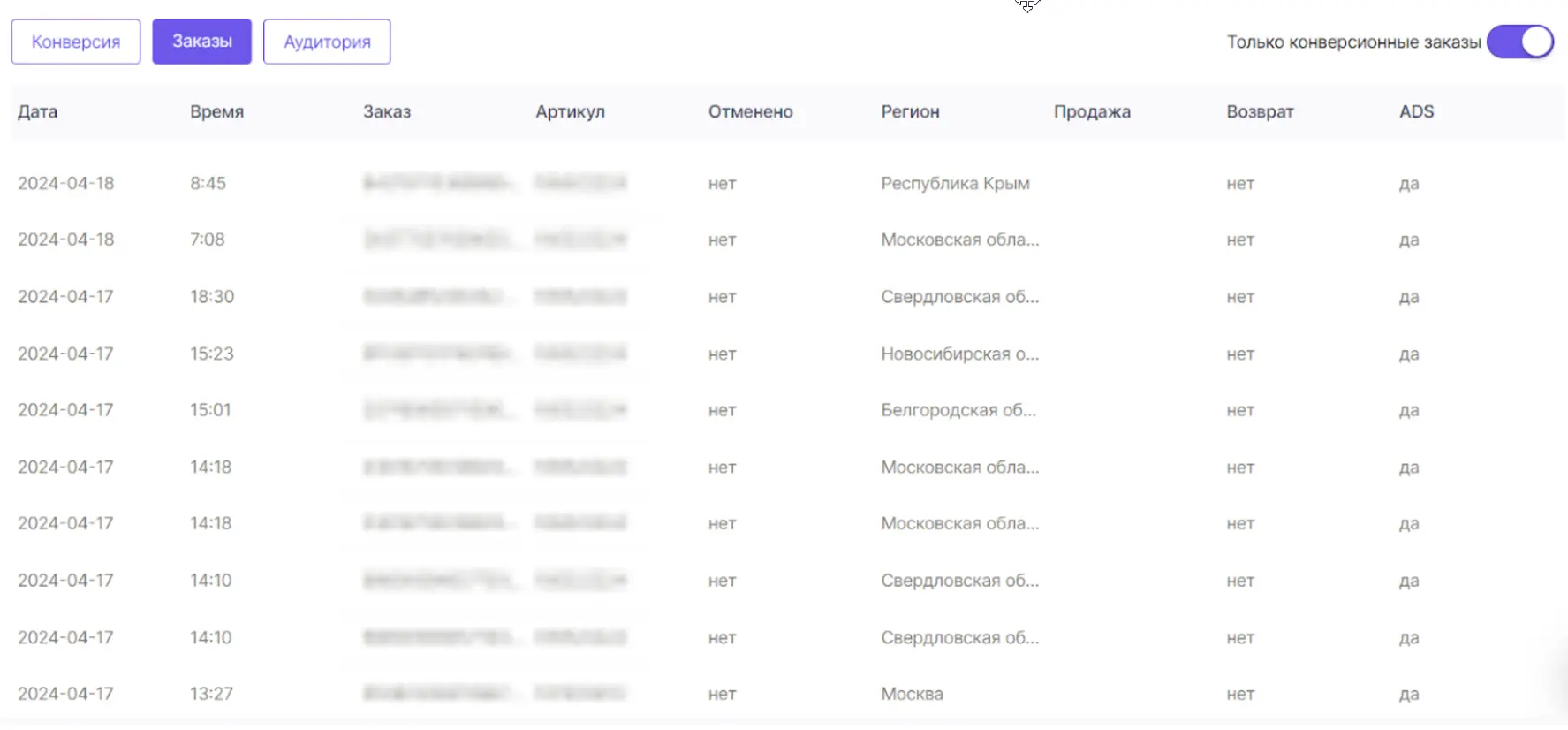 3. Детализация заказов с адресами и отслеживанием выкупов / возвратов. Что помогает отследить точную окупаемость вложений в рекламу и принять верные дальнейшие шаги. А также протестировать сервис, сделав самостоятельно заказы, что мы делаем регулярно при работе с клиентами.