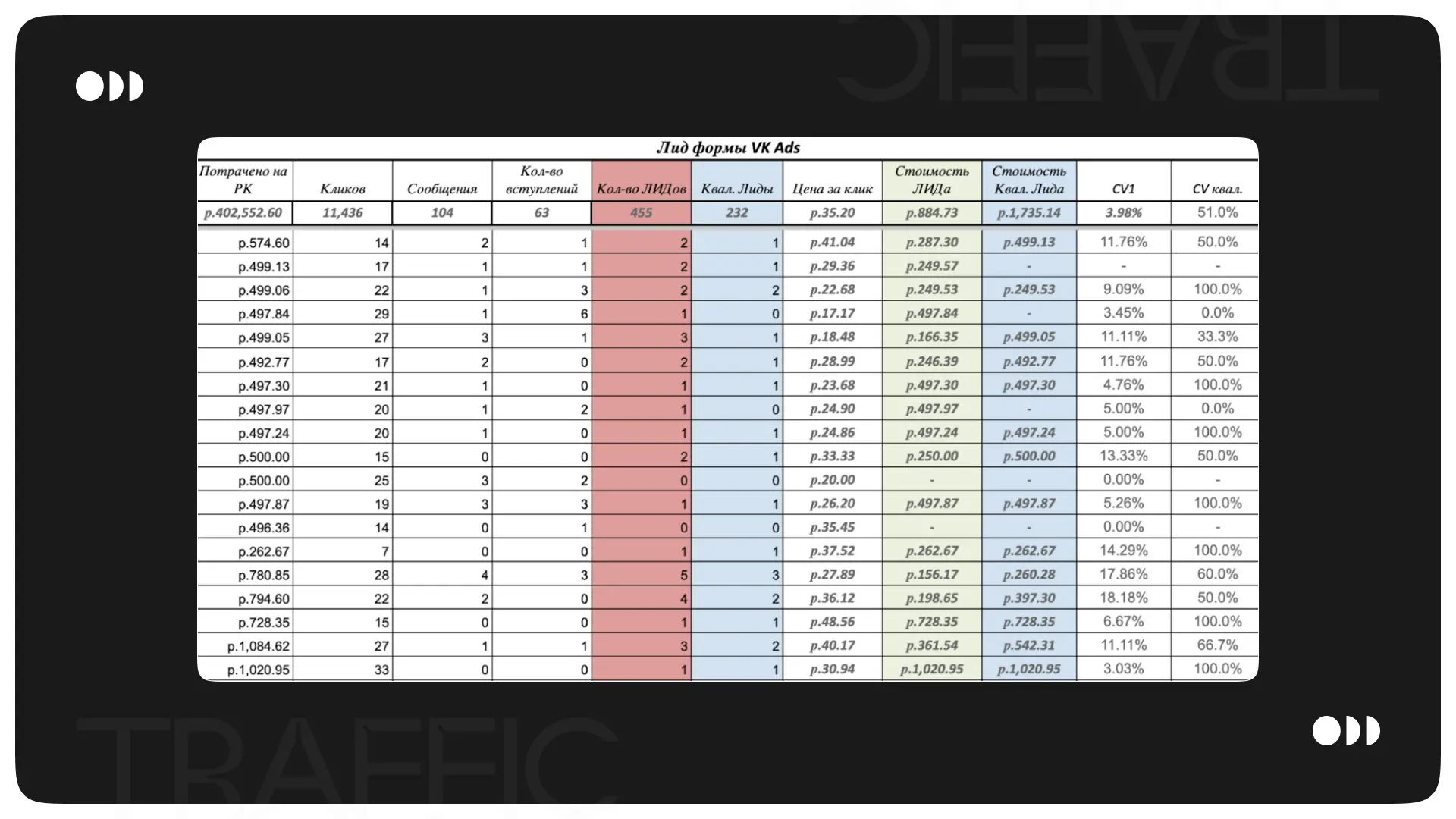 Расход: 402.675₽  Количество заявок: 455   Стоимость заявки: 885₽  Закрепляем ниже скриншот из рекламного кабинета VK Ads.