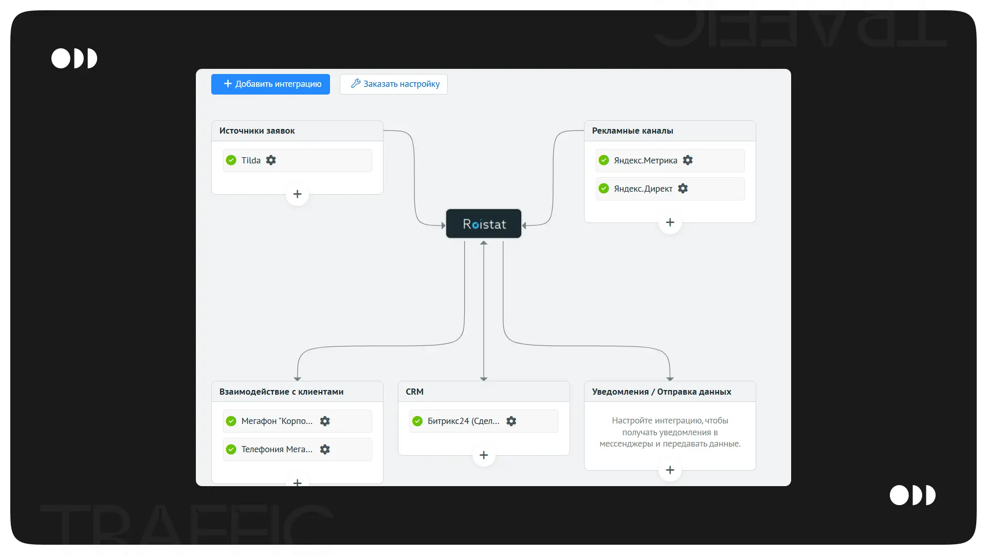 Для наилучшей оптимизации рекламных кампаний мы интегрировали сервис Roistat, который дает возможность настроить сквозную аналитику, внедрять коллтрекинг, и email-трекинг, а также формировать отчеты.