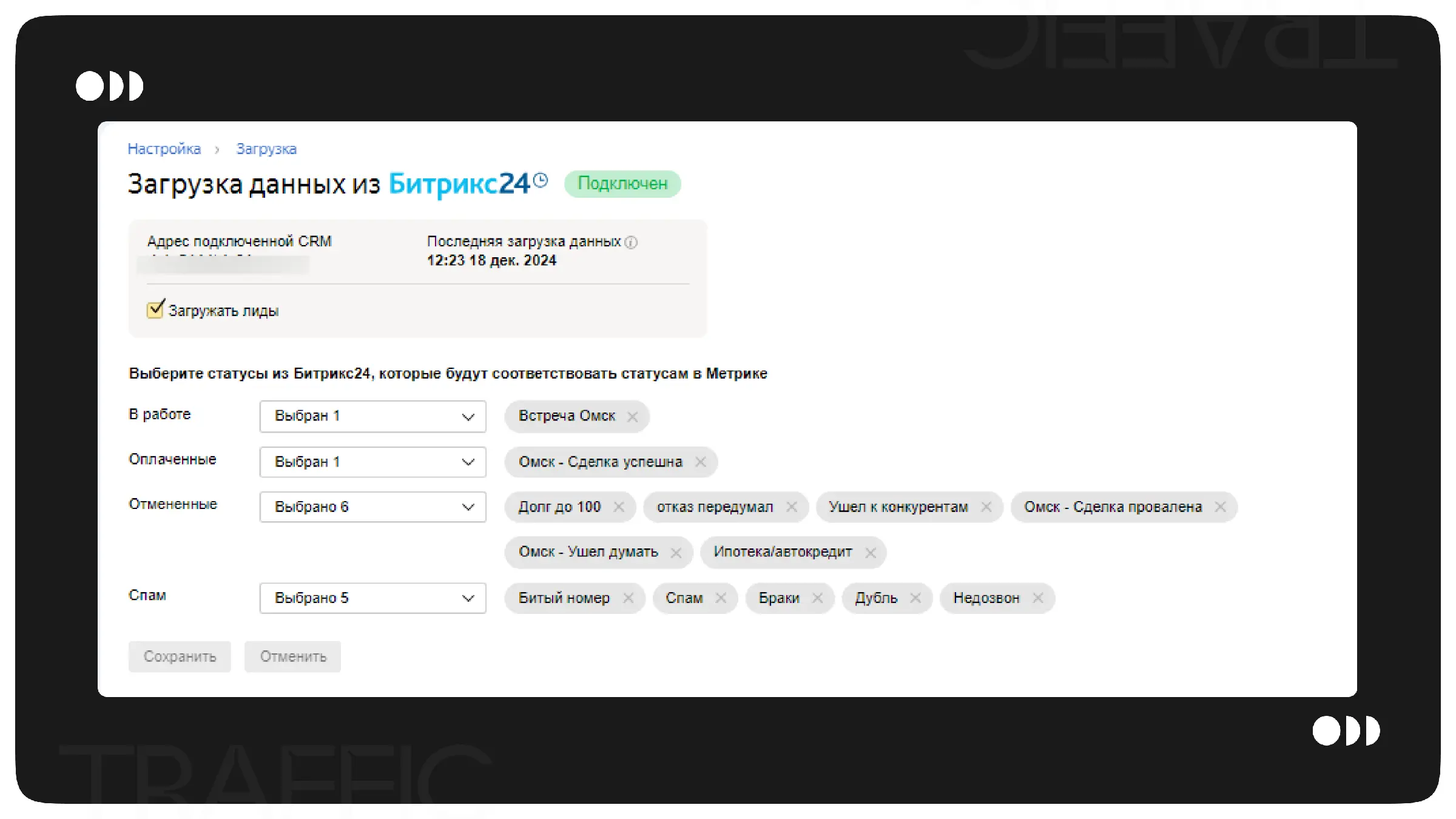 Затем интегрировали Яндекс Метрику и Битрикс24. Это позволило передавать данные из CRM в Яндекс Метрику и получать информацию о квалифицированных лидах, отслеживаемых только по статусам в Битрикс24.
