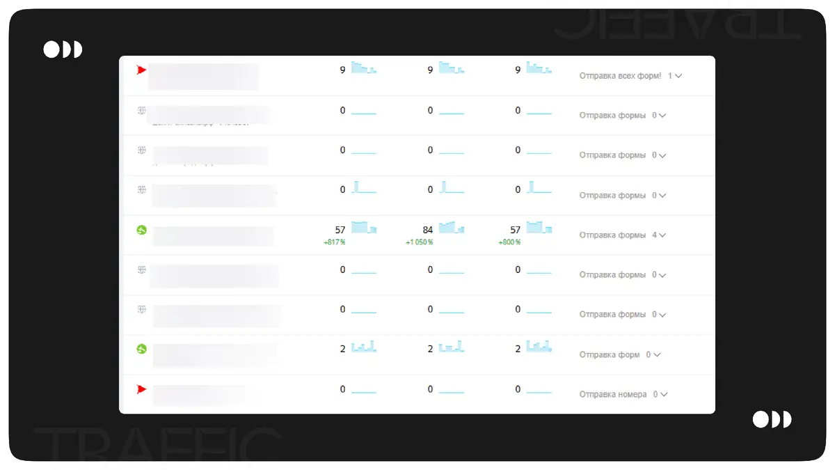 С клиентом была согласована таблица отчетности, которая отражала ключевые показатели.