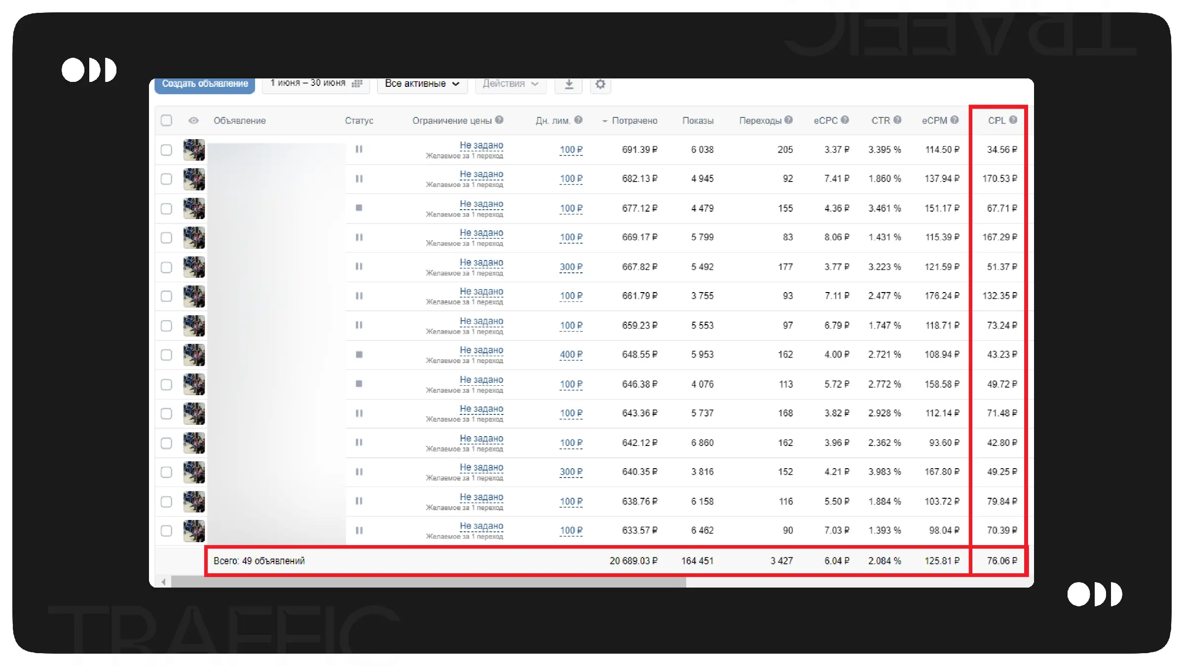 В первый месяц запуска было потрачено 272.000₽, получена 281 заявка, CPA составил 967₽.