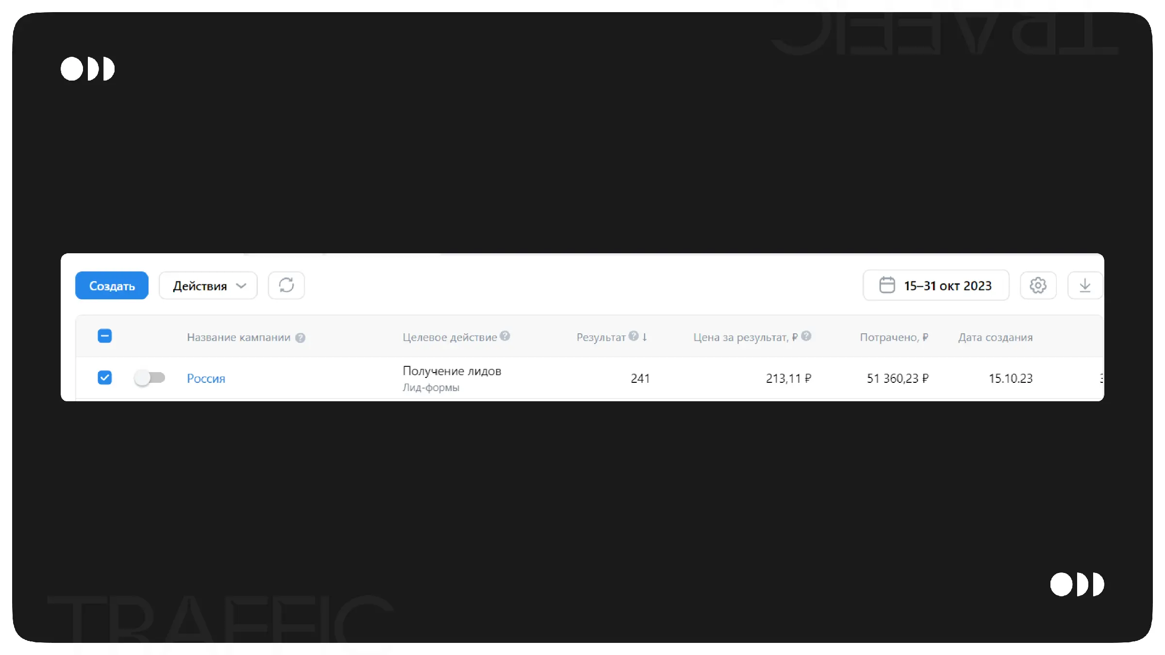 За первую неделю показов мы получили 241 заявку по цене 213₽ за каждую. Трафик, как и в старой рекламной кампании, направлялся на лид-формы.