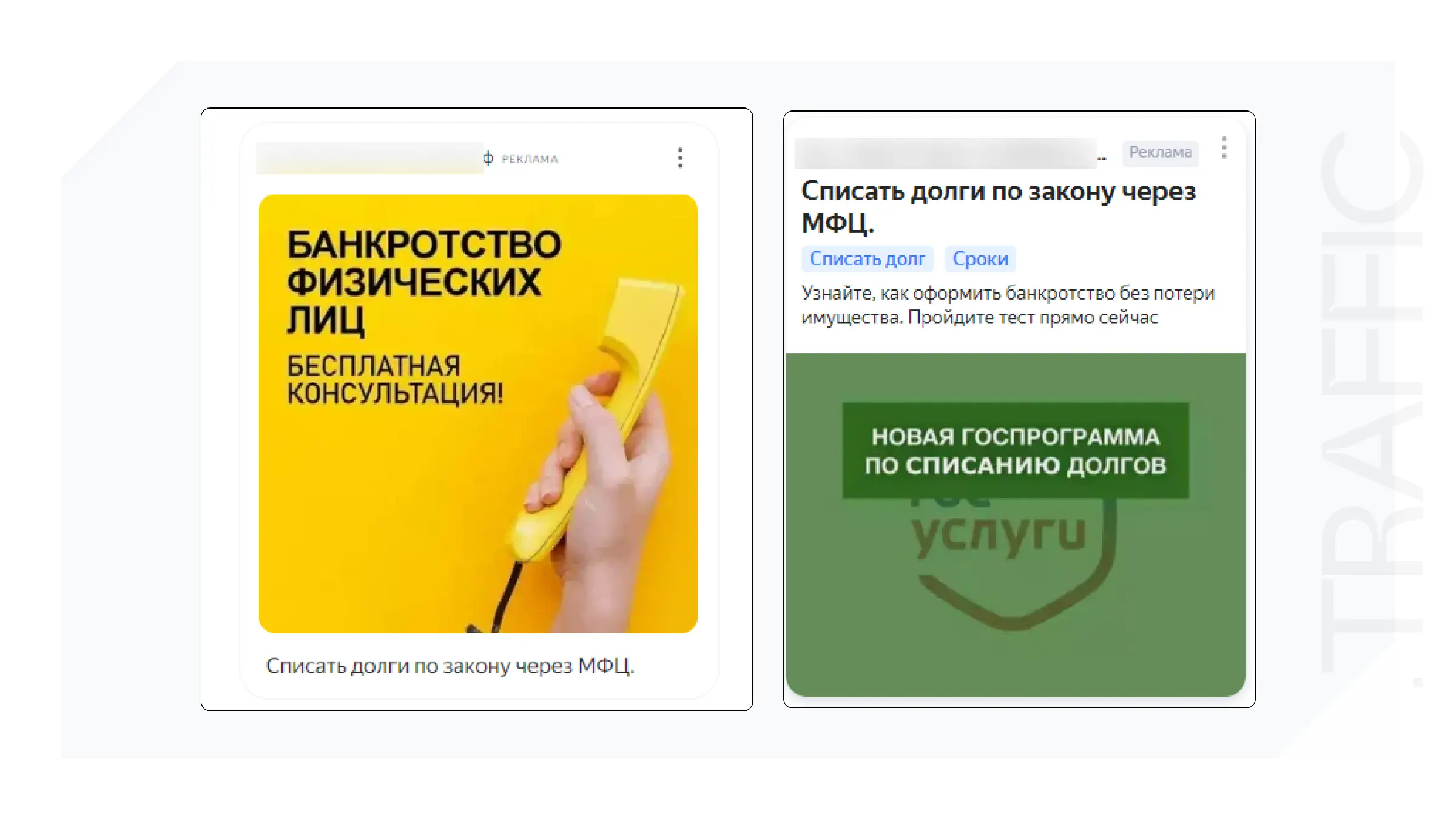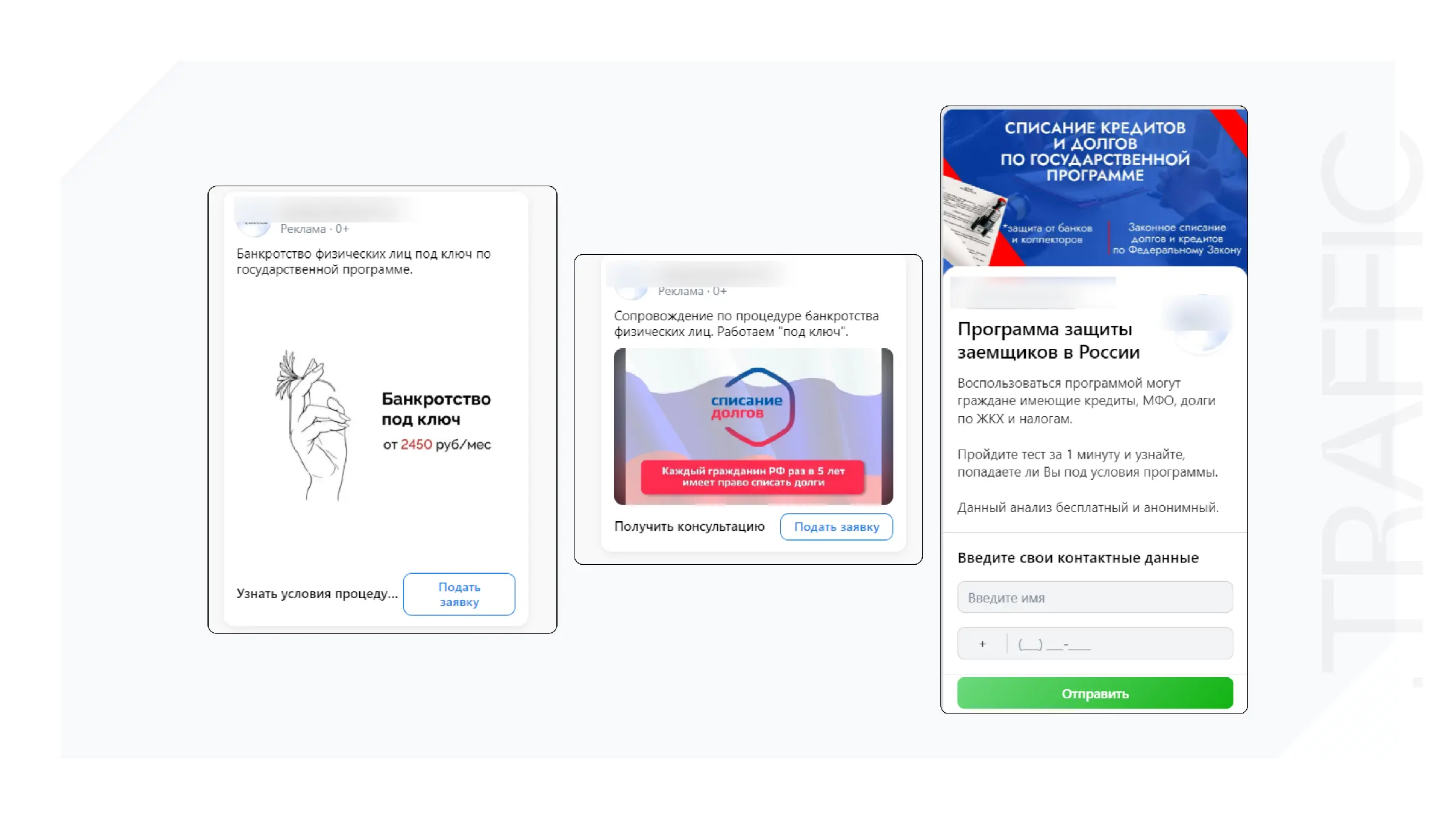 Показы осуществлялись на лид-формы, которые содержали всего несколько вопросов о сумме долга и наличии имущества.