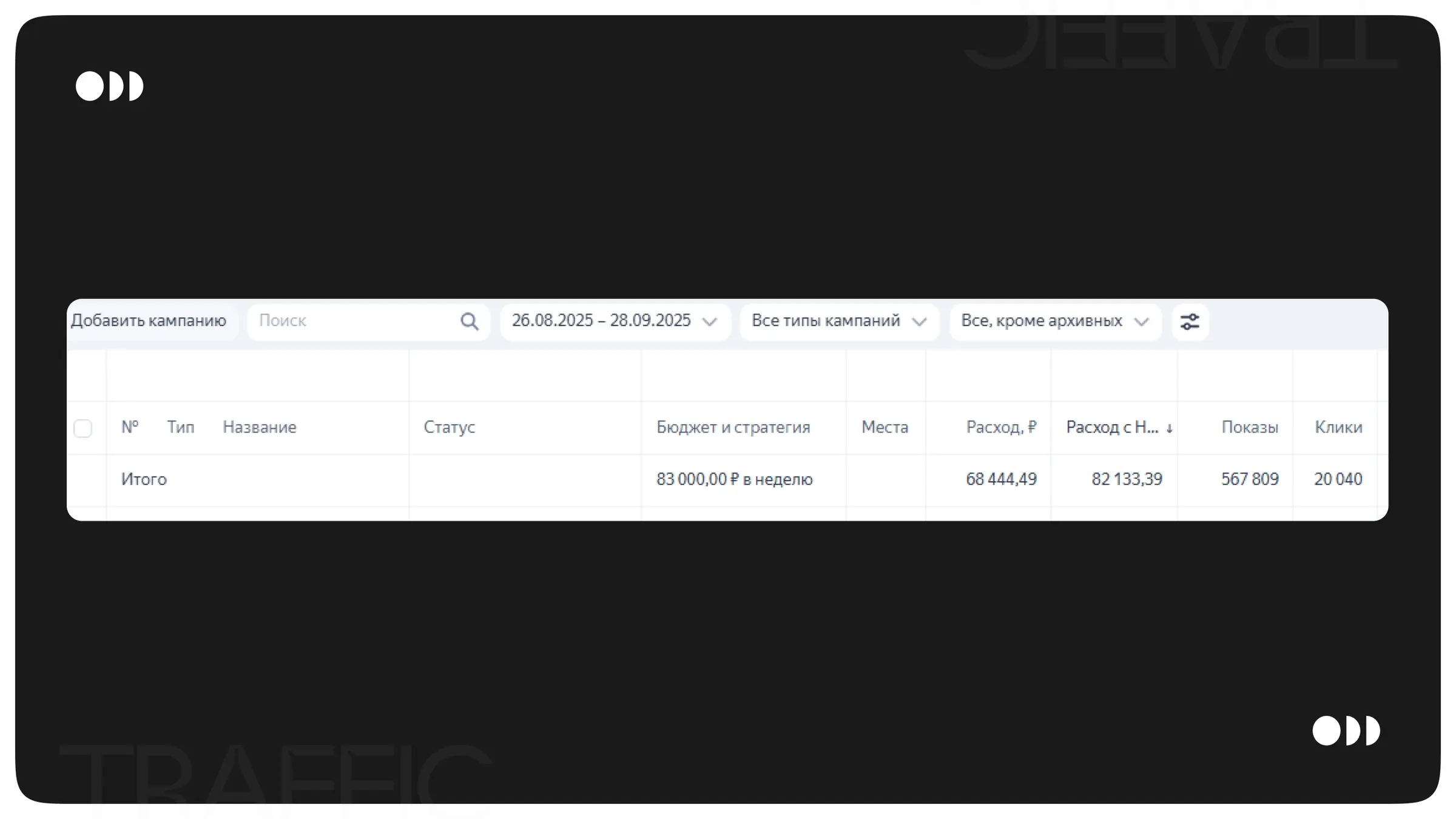 Основным форматом для запуска рекламы была выбрана ЕПК (единая перформанс-кампания) с продвижением в рекламной сети Яндекса (РСЯ).