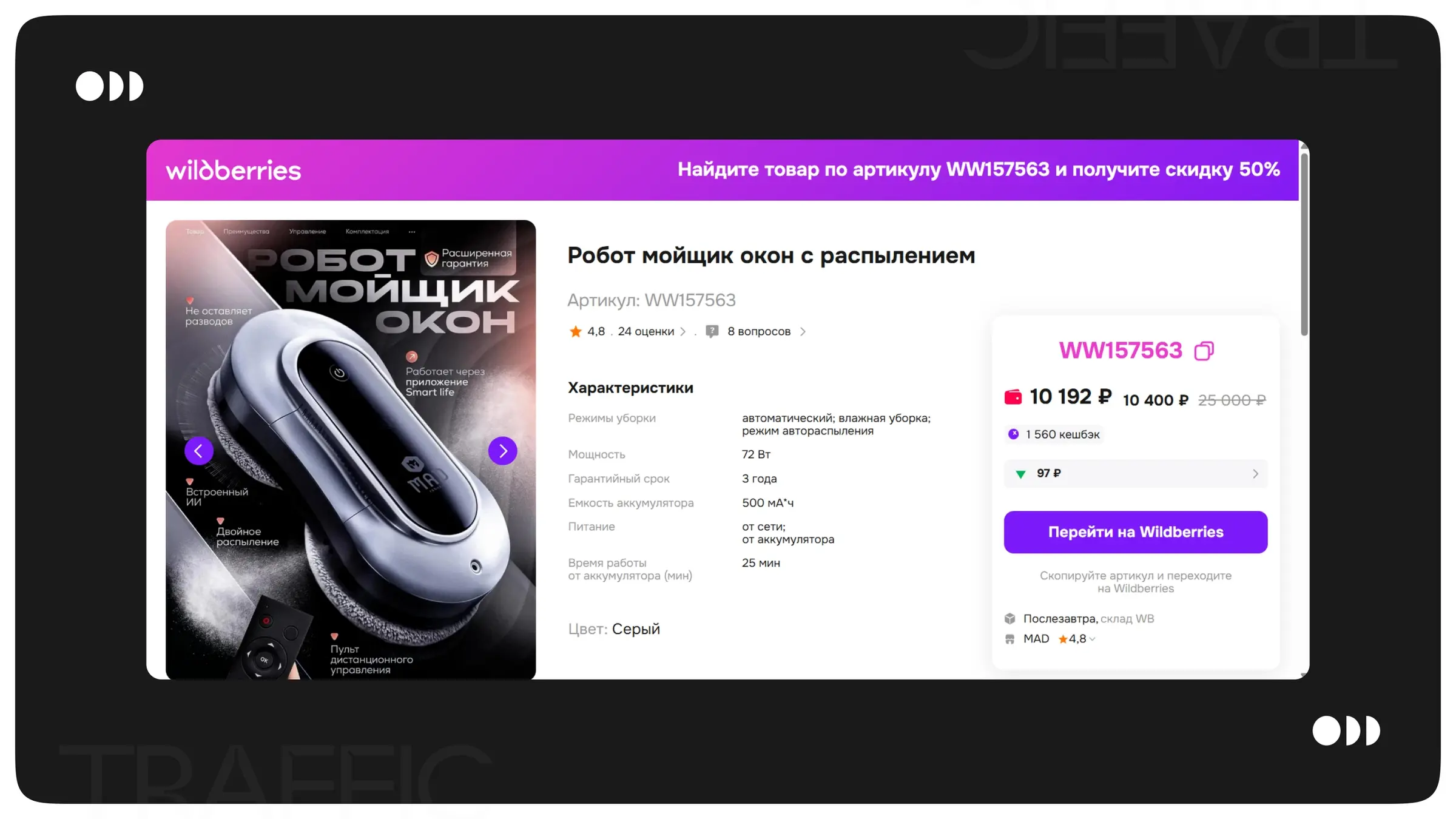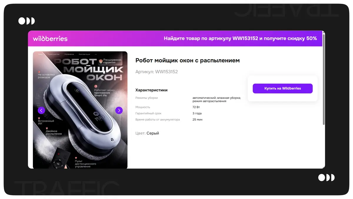 Товар - робот мойщик окон. Ссылка на карточку - https://www.wildberries.ru/catalog/473442223/detail.aspx?targetUrl=SP