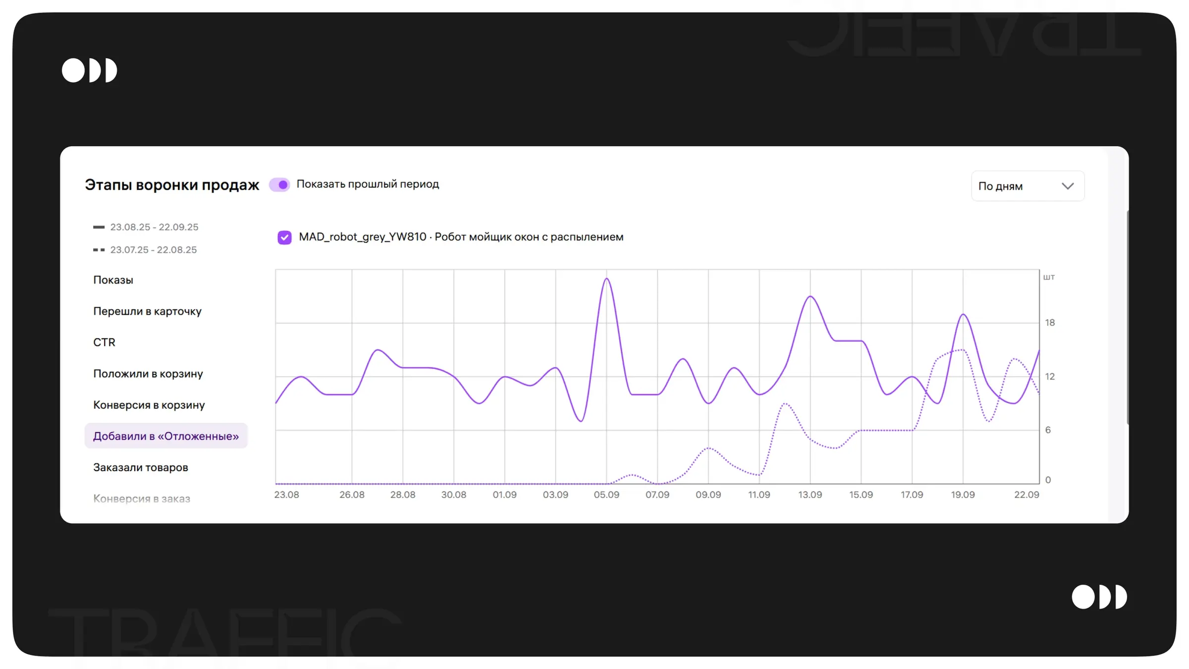Статистика по воронке на момент запуска теста (верхняя шкала — период работы рекламной кампании в РСЯ).