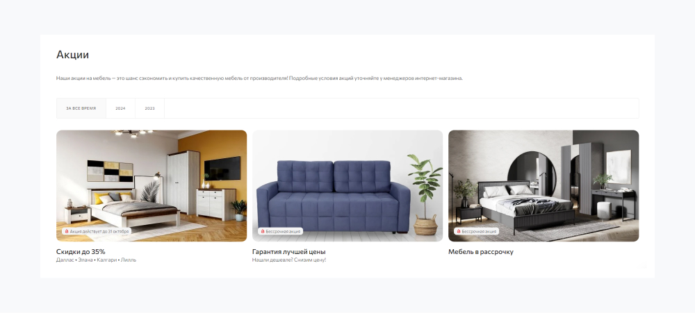 - Акции при заказе с доставкой и сборкой.