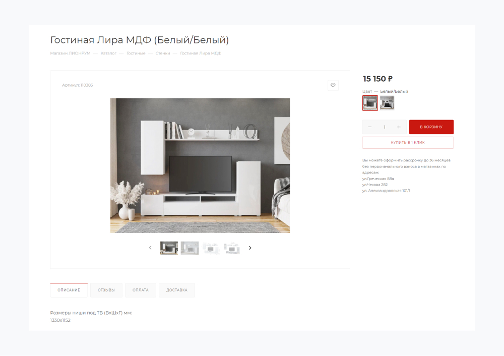 Мебель — товар, который покупатели тщательно изучают. В карточке должно быть: