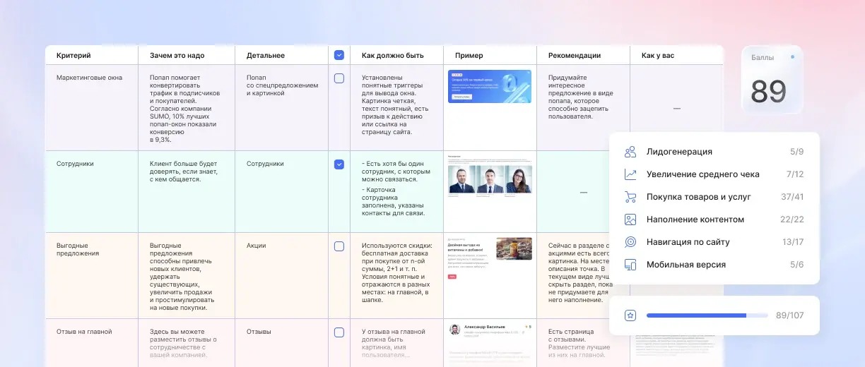 Для быстрой самодиагностики можно использовать чеклист из главных ошибок, которые убивают конверсию: неудобные формы, слабые призывы к действию, медленная загрузка и другие технические проблемы.