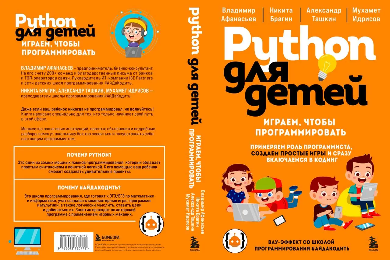 Нужен был еще один триггер-катализатор.. Ко мне постучались из издательства ЭКСМО и предложили написать детский учебник по Python. С меня — рукопись. Всё остальное — издательство. Бонусом — логотип «АйДаКодить» на обложке. Авторские — символические.