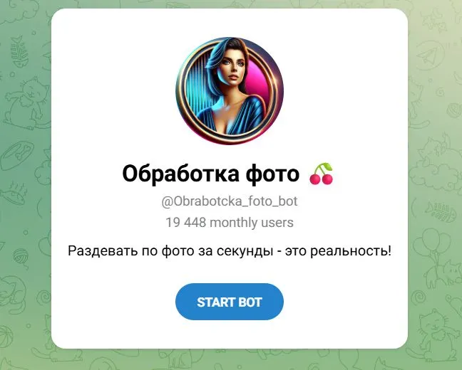 Обработка фото ⚡️ — двухкнопочный бот, чтобы раздеть человека по фото онлайн