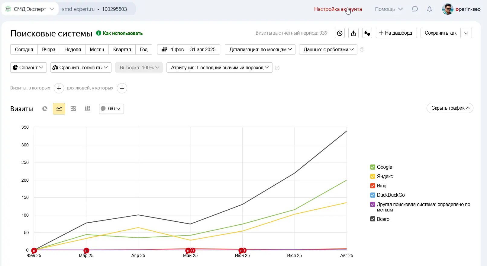 Важно отметить, что рост был не «скачкообразным», а плавным и устойчивым. Это говорит о том, что поисковые системы положительно восприняли новый сайт: страницы индексировались без проблем, тексты соответствовали запросам, а структура помогала формировать релевантность.