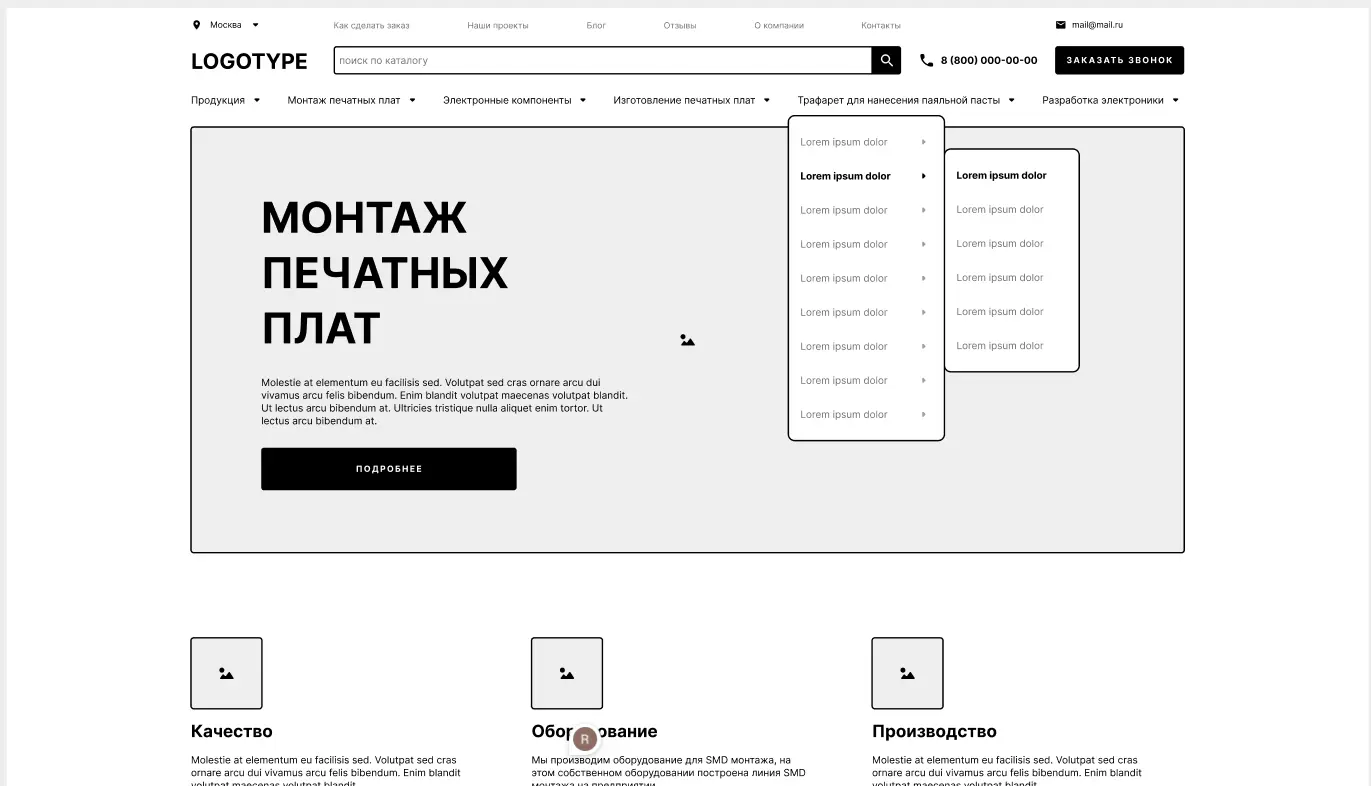 Анализ показал интересный момент: текущая структура сайта не отражала реальные потребности аудитории. На момент старта работ единственной «точкой входа» оставалась главная страница, которая пыталась закрыть сразу все направления: от разработки электроники до монтажа печатных плат. Но в SEO такой подход не работает - поисковым системам нужна чёткая логика, а пользователям - понятные ответы на конкретные запросы.