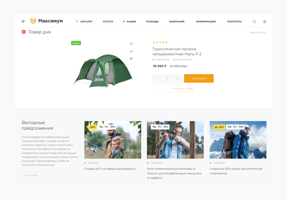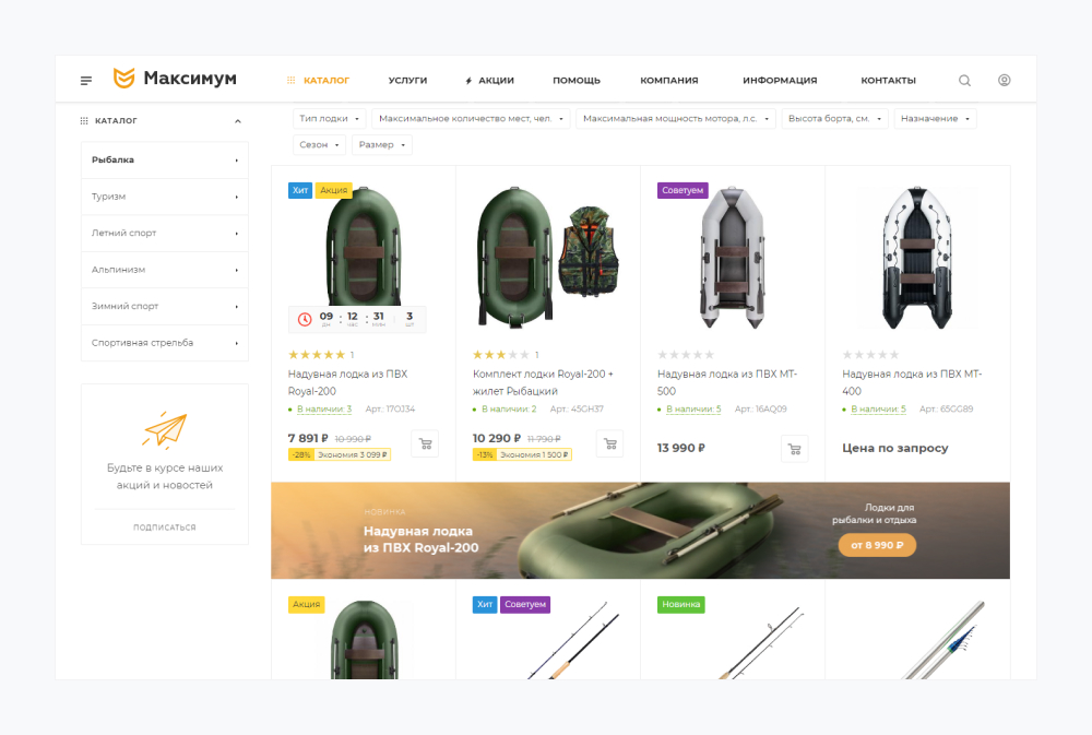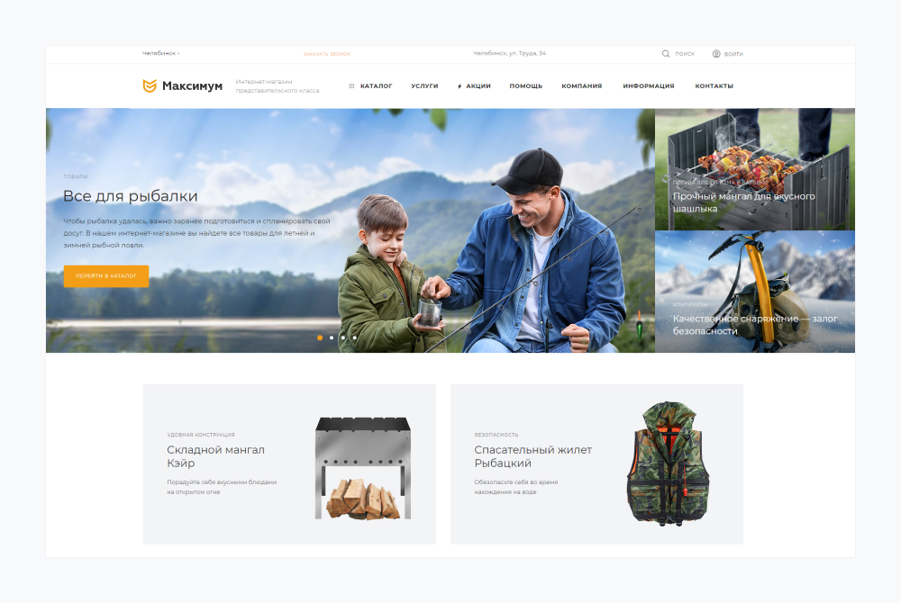 Для рыболовного интернет-магазина практичным выбором станет готовое решение, адаптированное под специфику отрасли, такое как «Аспро: Максимум».