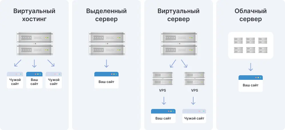 - Выделенный сервер — для крупных проектов с высокой нагрузкой.