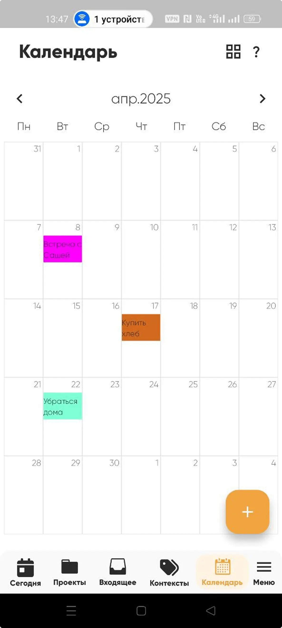 ✅ Поддержка проектов и подзадач, чтобы большие цели разбивались на конкретные шаги