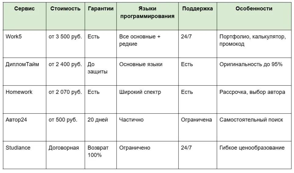 Не теряйте время на поиски — выберите проверенный сервис из нашего рейтинга и оформите заказ уже сегодня. Work5 предлагает лучшее сочетание качества, надежности и доступной стоимости для студентов IT-направлений.