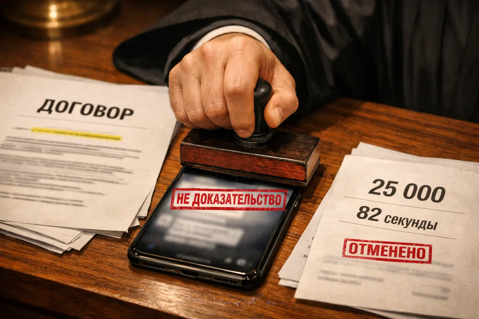 Суд не принял во внимание факт отказа Исполнителя от своих обязанностей, а на скриншоты переписки в мессенджере тот заявил, что это был не он. Номер в переписке виден, в договоре указан тот же самый номер — но, по его словам, писал «кто-то другой».