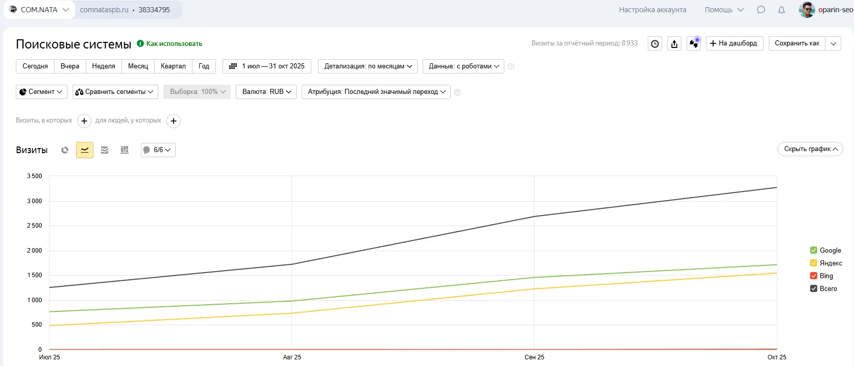 - Увеличение органического трафика: На первом месте стояла задача увеличить количество визитов на сайт с помощью эффективной SEO-оптимизации.