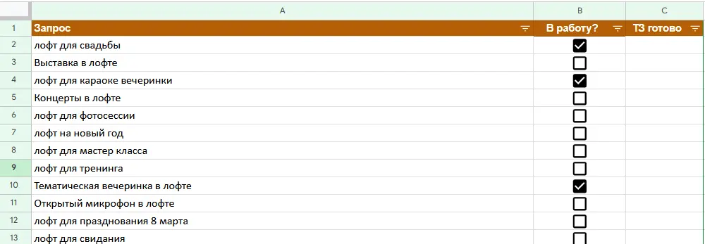Одним из ключевых этапов стало добавление новых посадочных страниц, которые были оптимизированы под дополнительные информационные запросы. Мы выявили новые направления, которые можно было развивать с помощью новых страниц, такие как аренда лофтов для свадеб, корпоративов, концертов и других событий. Каждая из новых страниц была проработана с точки зрения SEO, что позволило расширить тематику сайта и повысить видимость по дополнительным запросам.