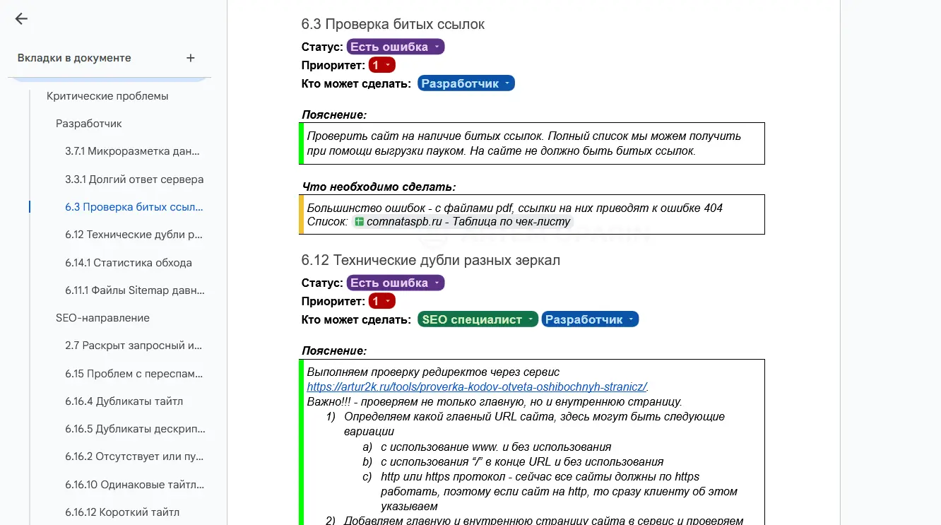 - Устранение технических ошибок: Необходимо было исправить битые ссылки, ошибки в сайт-мапе и другие технические проблемы, чтобы улучшить индексацию сайта поисковыми системами.