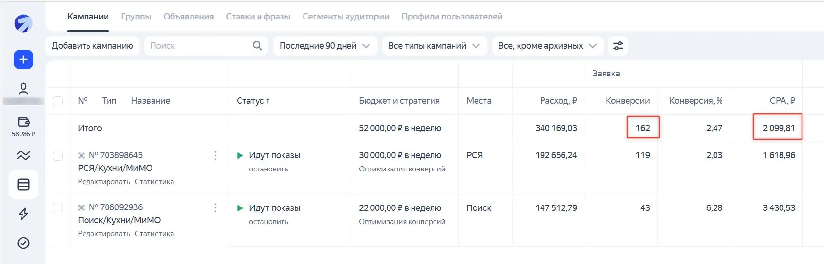 Клиент: Компания производит кухни на заказ более 8 лет. На момент обращения ко мне получали заказы в основном по сарафану, также ранее пробовали запуск в Яндекс Директ, но получить нужный результат не получилось.