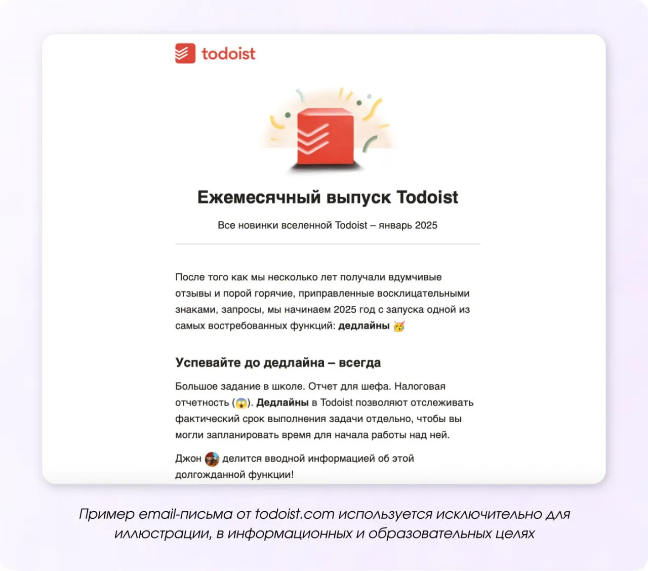 После Нового года начинается марафон других праздников: старый Новый год, Татьянин день, День всех влюблённых. Ещё есть тематические и профессиональные праздники, которые стоит заранее включить в свой календарь рассылок.