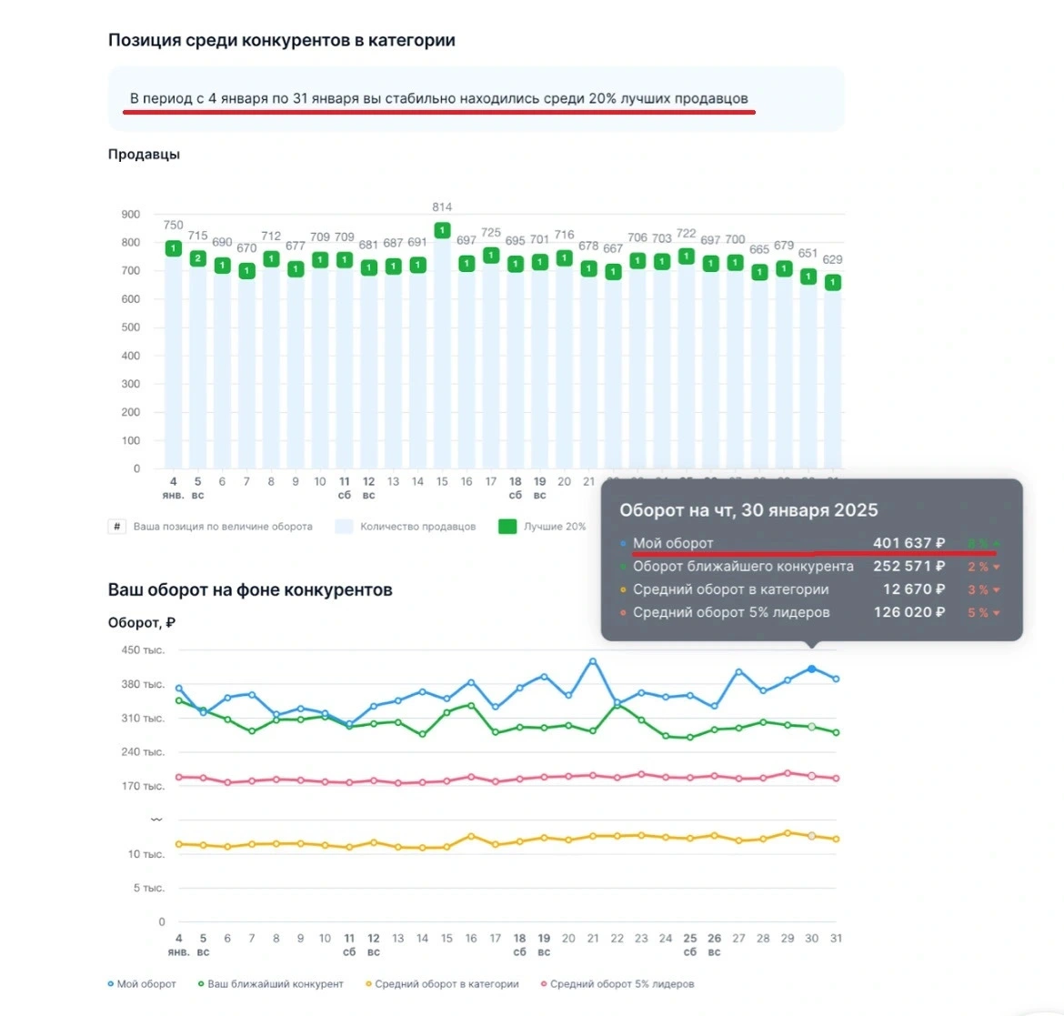 В январе стабильно удерживали 1-е место в категории и увеличили оборот еще на 35% в сравнении с декабрем.
