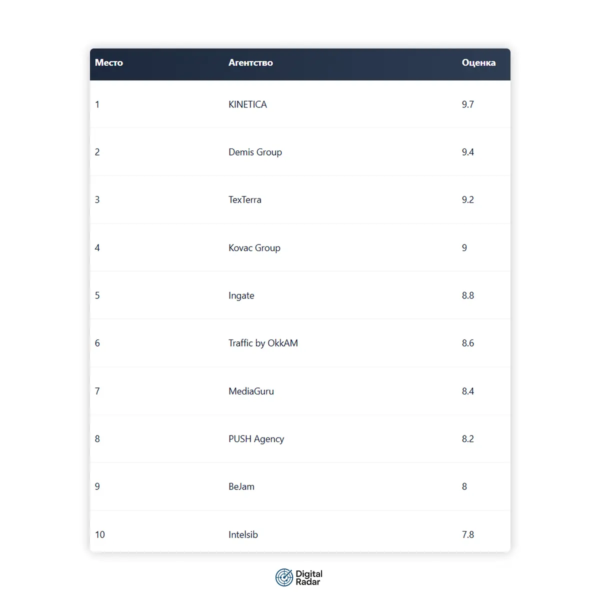 Международная платформа, существует с 2004 года. 1000+ специалистов по всему миру. ТОП-1 в SMM-продвижении. Входят в топ-рейтинги: 1 место в SEO-оптимизации, лидеры в performance и контекстной рекламе. 30+ агентств и 100+ digital-решений в группе.