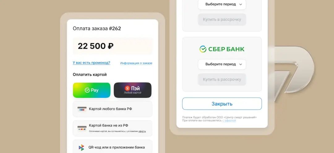 Вы получаете полноценный платежный шлюз, который позволяет принимать деньги от клиентов, выдавать чеки и оформлять рассрочки. При этом вам не нужно платить абонентскую плату за использование сервиса — система берет только комиссию с успешных транзакций.