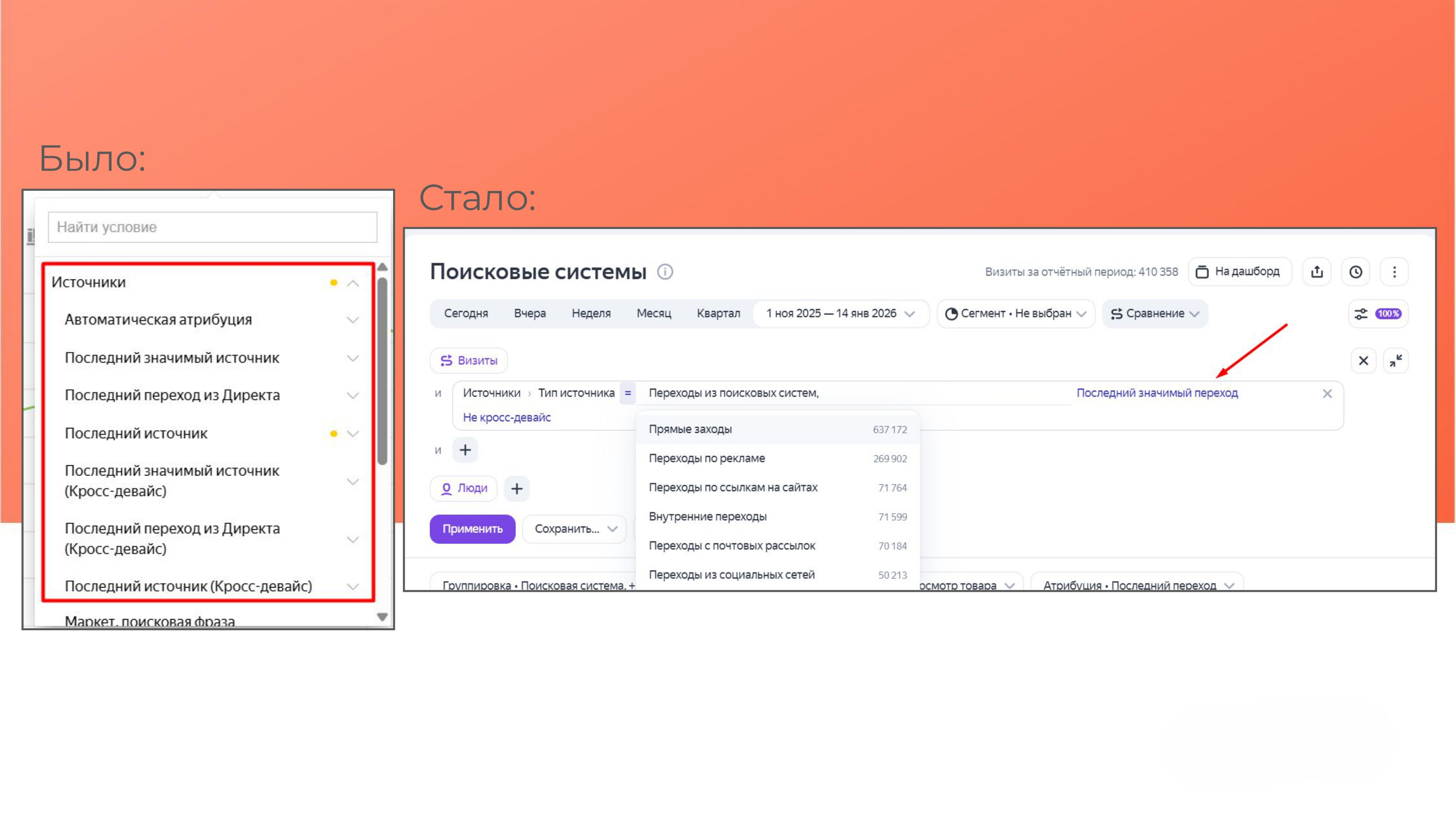 14. Механика и визуализация сравнения сегментов были переработаны, что влияет на привычный порядок анализа и требует привыкания.